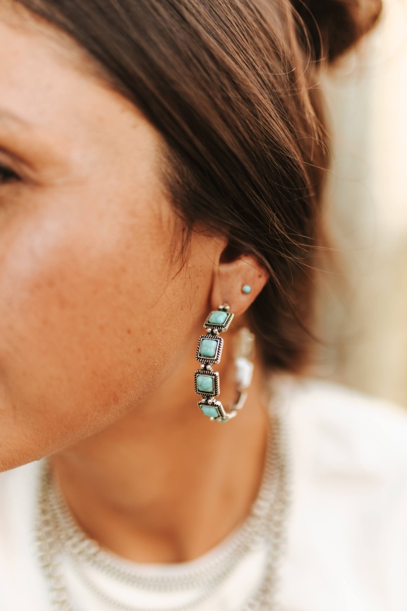 The Square Concho Hoop Earrings serve up bold western energy with a twist. Featuring classic conchos in a unique square shape, these hoops bring vintage rodeo vibes to any outfit. Lightweight but full of personality, they’re perfect for dressing up denim or adding a little cowgirl glam to your day-to-day. Buckle up, babe—these earrings are made to be seen.