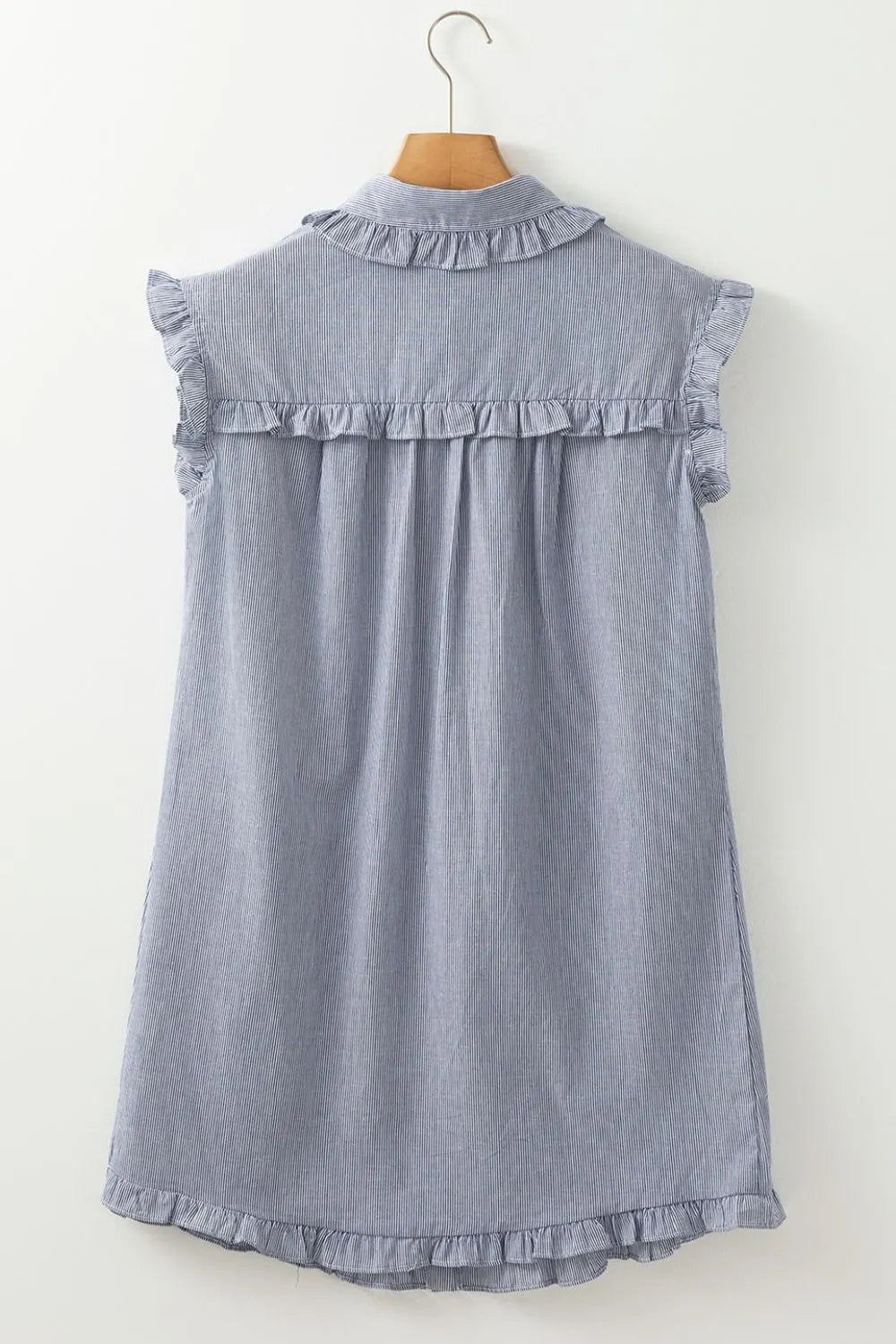 Stripe Frilled Ruffled Cap Sleeve Button Up Mini Dress