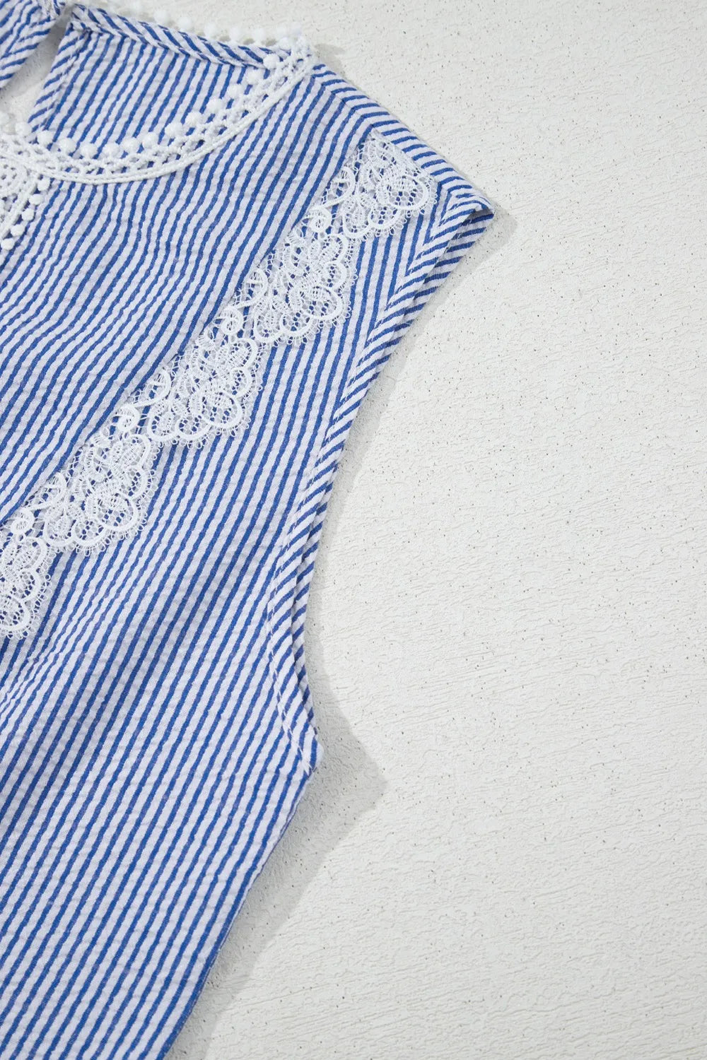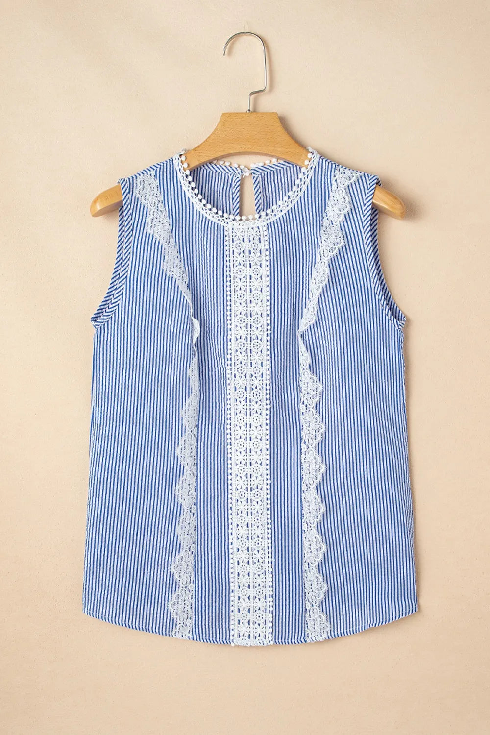 Stripe Lace Patchwork Crew Neck Sleeveless Top