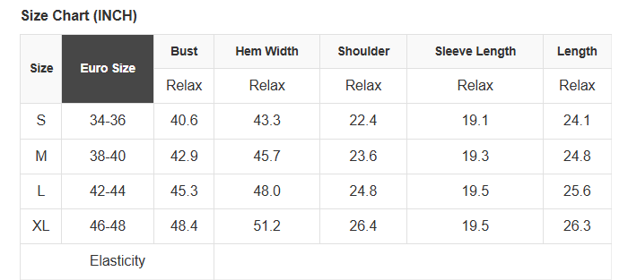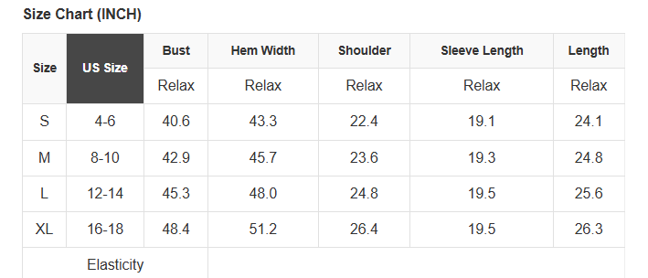 See size chart for approximate measurements.