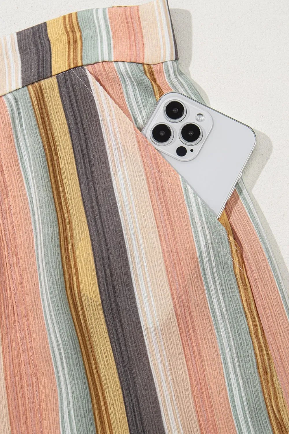 Striped Smocked Cami Top and Wide Leg Pants Set