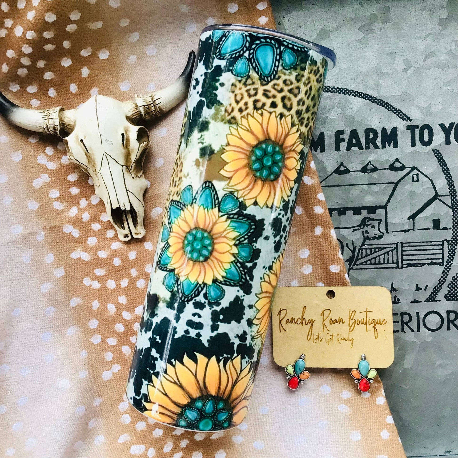Sunflower Gemstone Cow print 20oz Skinny Tumbler