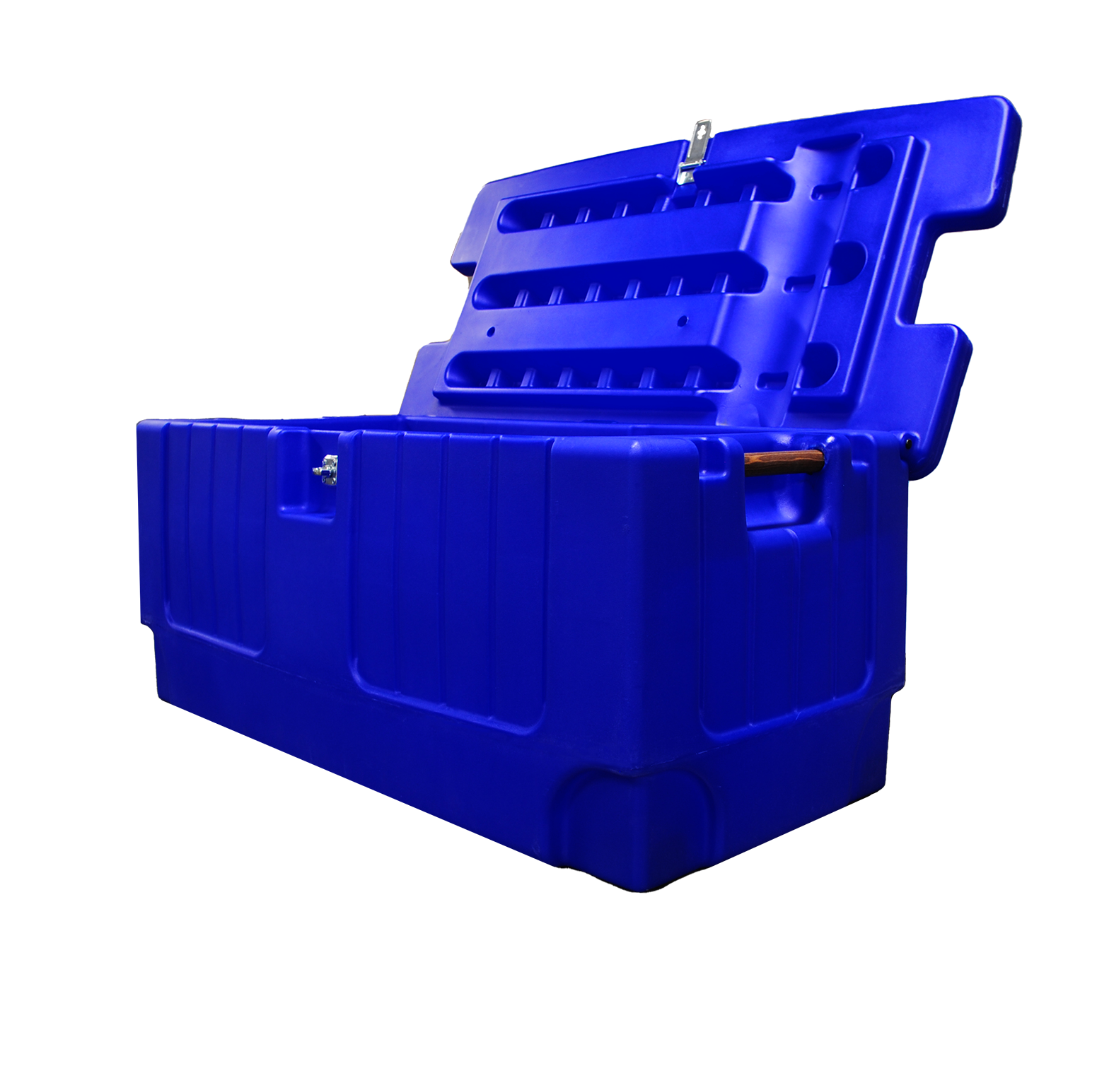 This lightweight, yet heavy-duty polyethylene tack trunk is sized to accommodate an English Saddle. The hinged lid can be padlocked to keep your tack safe! Great for traveling, barn and horse shows!