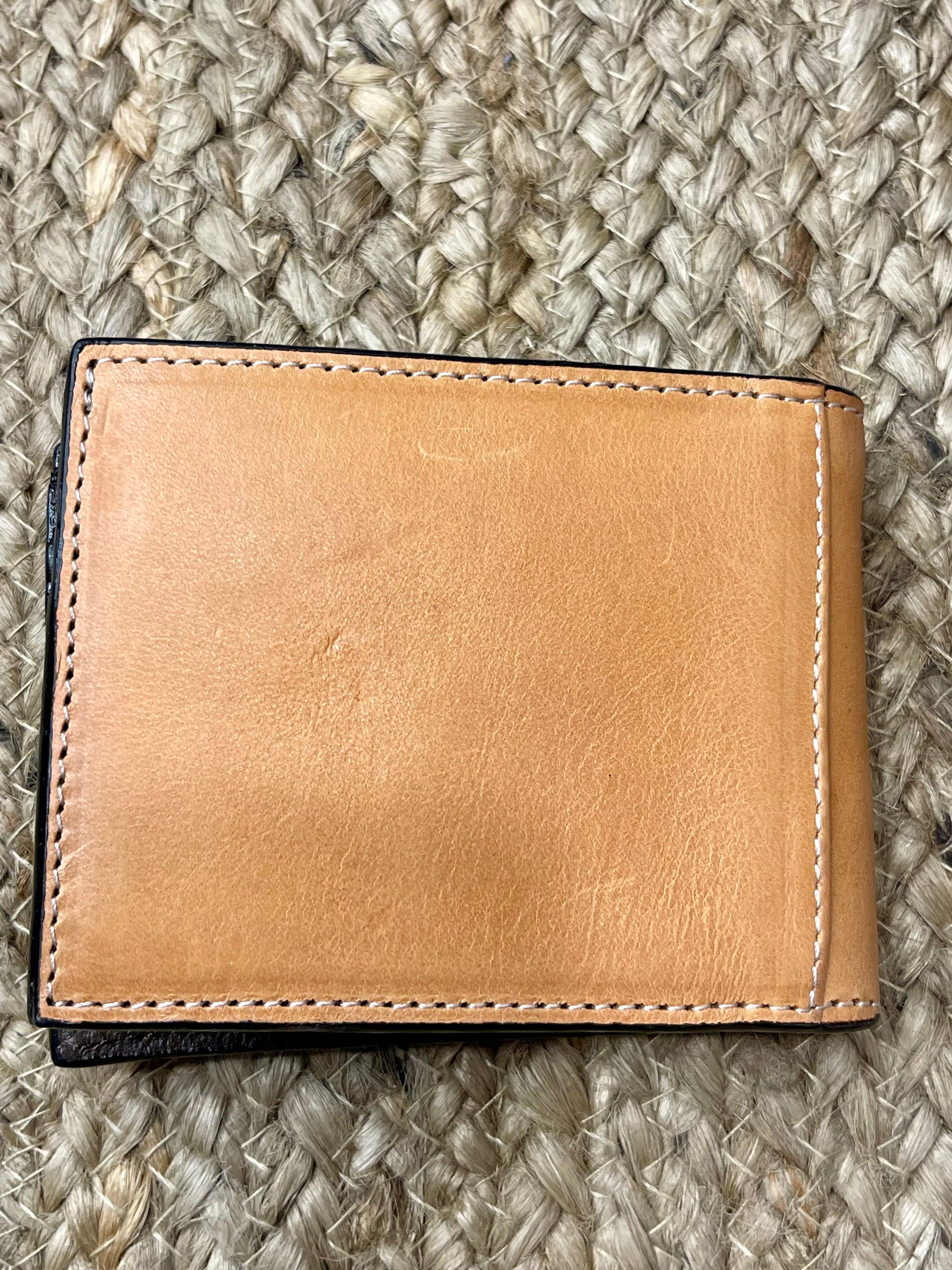 hand tooled, top grain leather, heavy duty stitching, multiple credit card slots.