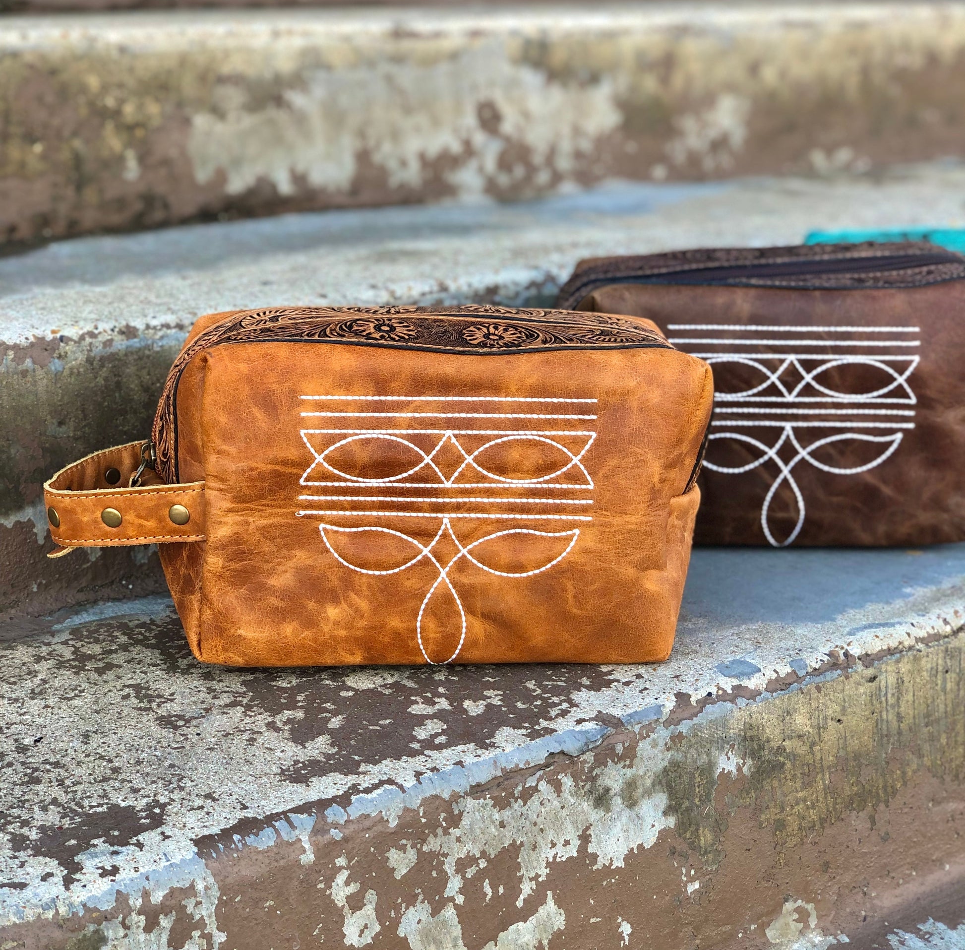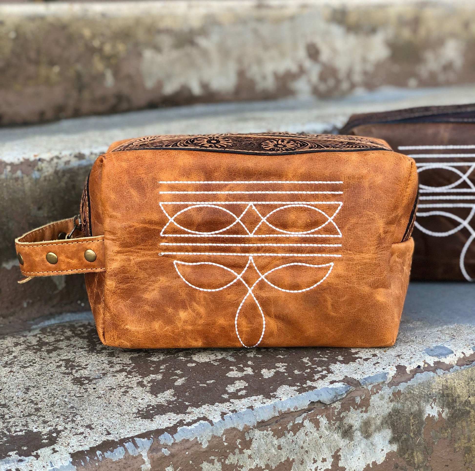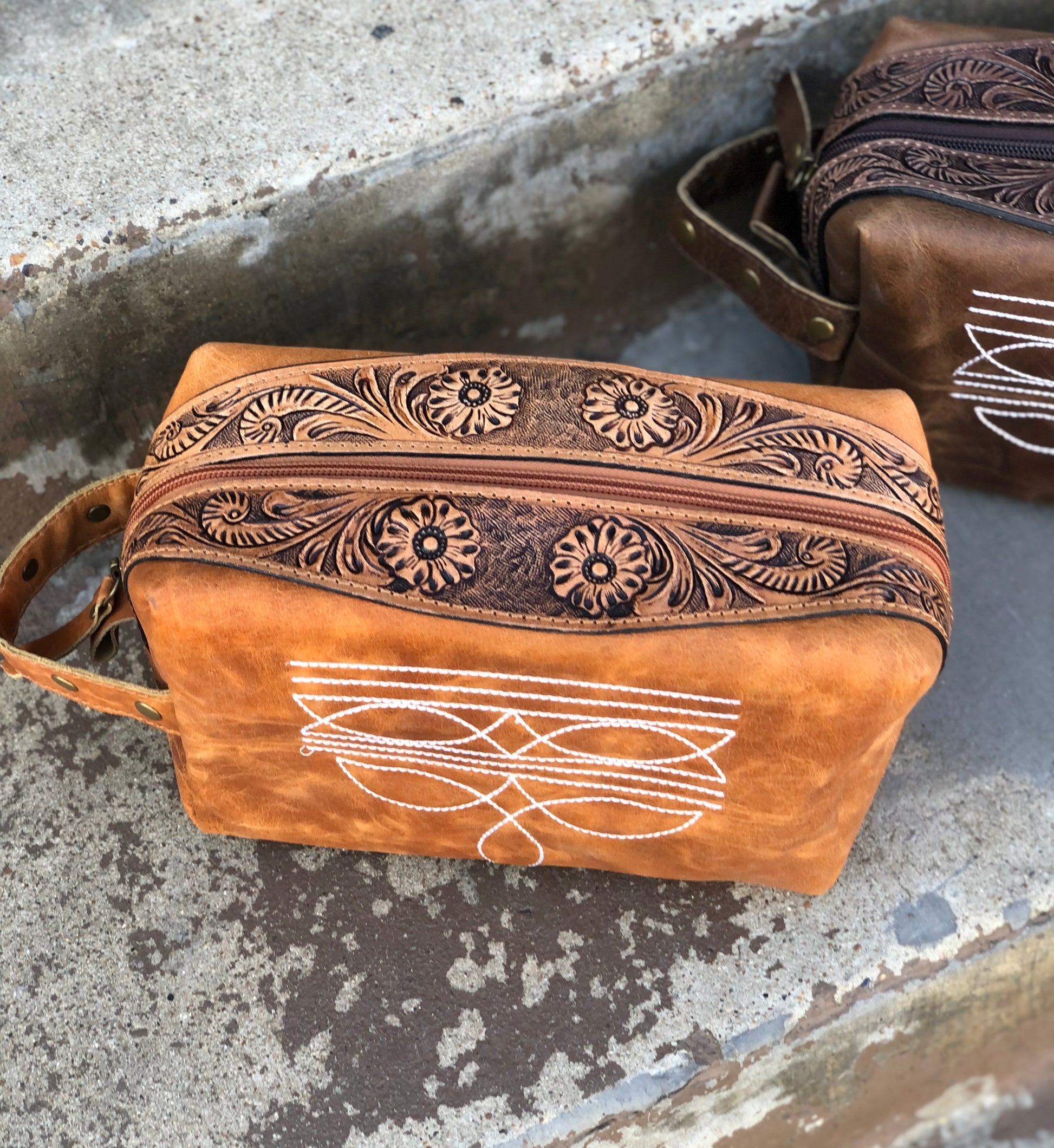 Tan Bootstitch Tooled & Leather Toiletry Bag