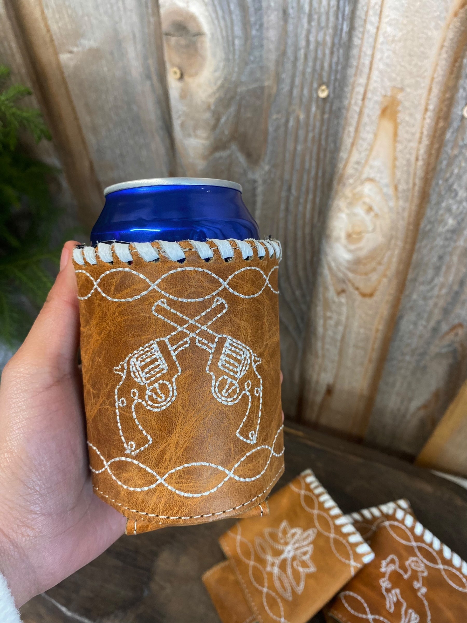 Tan Rockets Leather Koozie