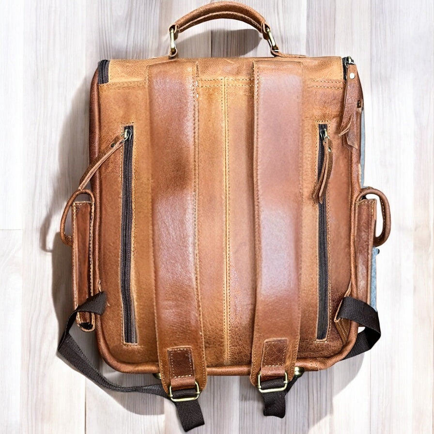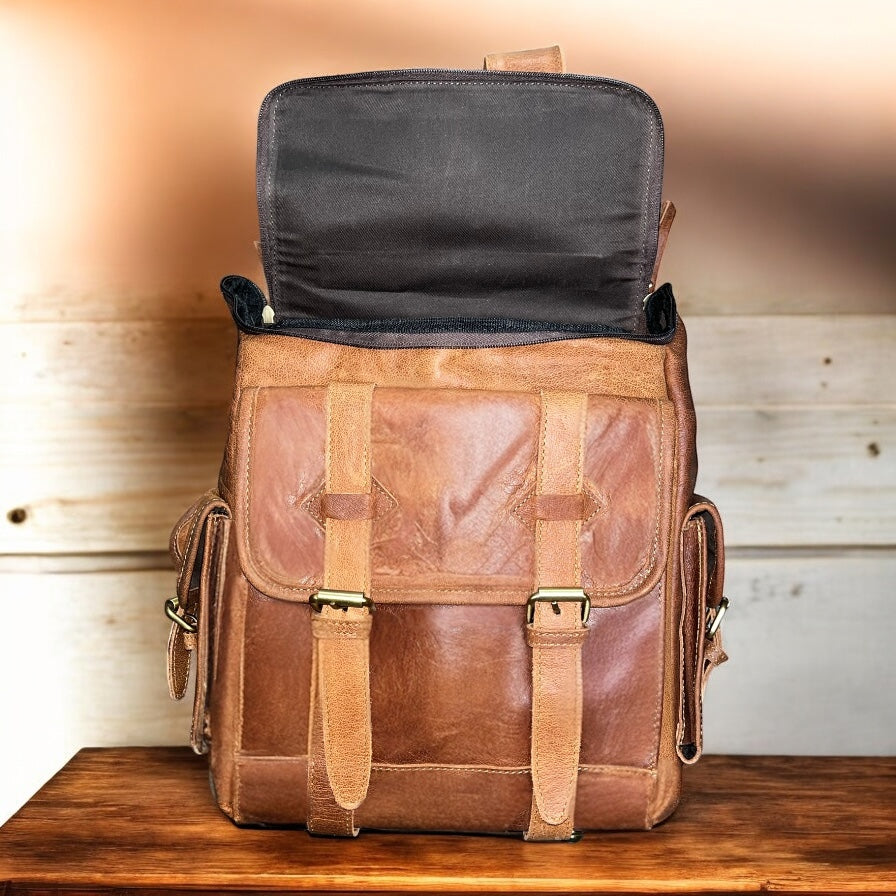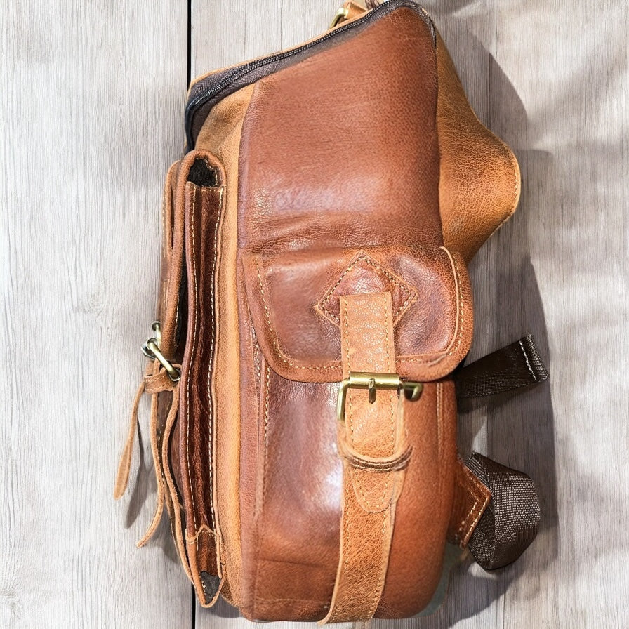 Tan rustic leather backpack