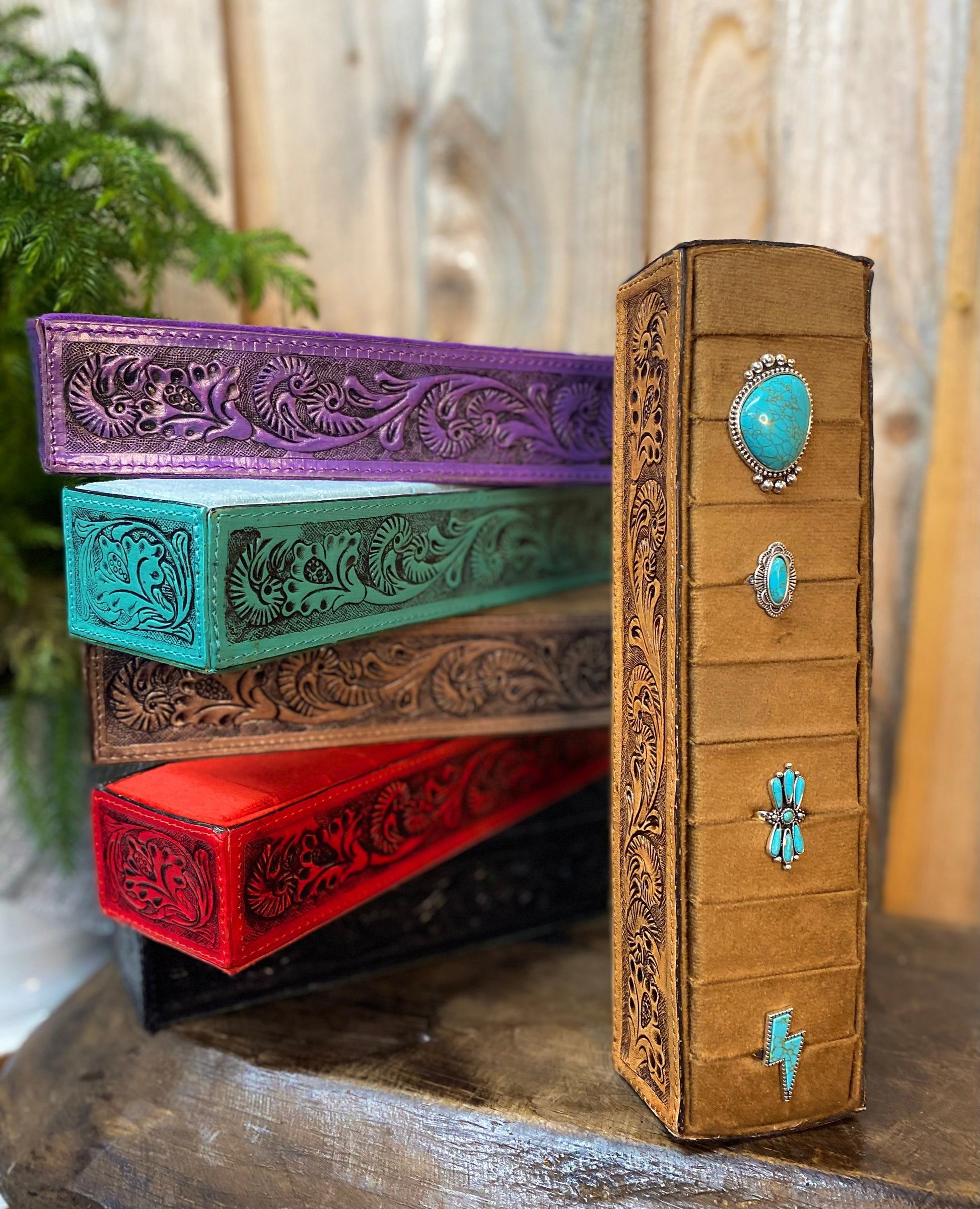 Tan Tooled Leather Ring Holder