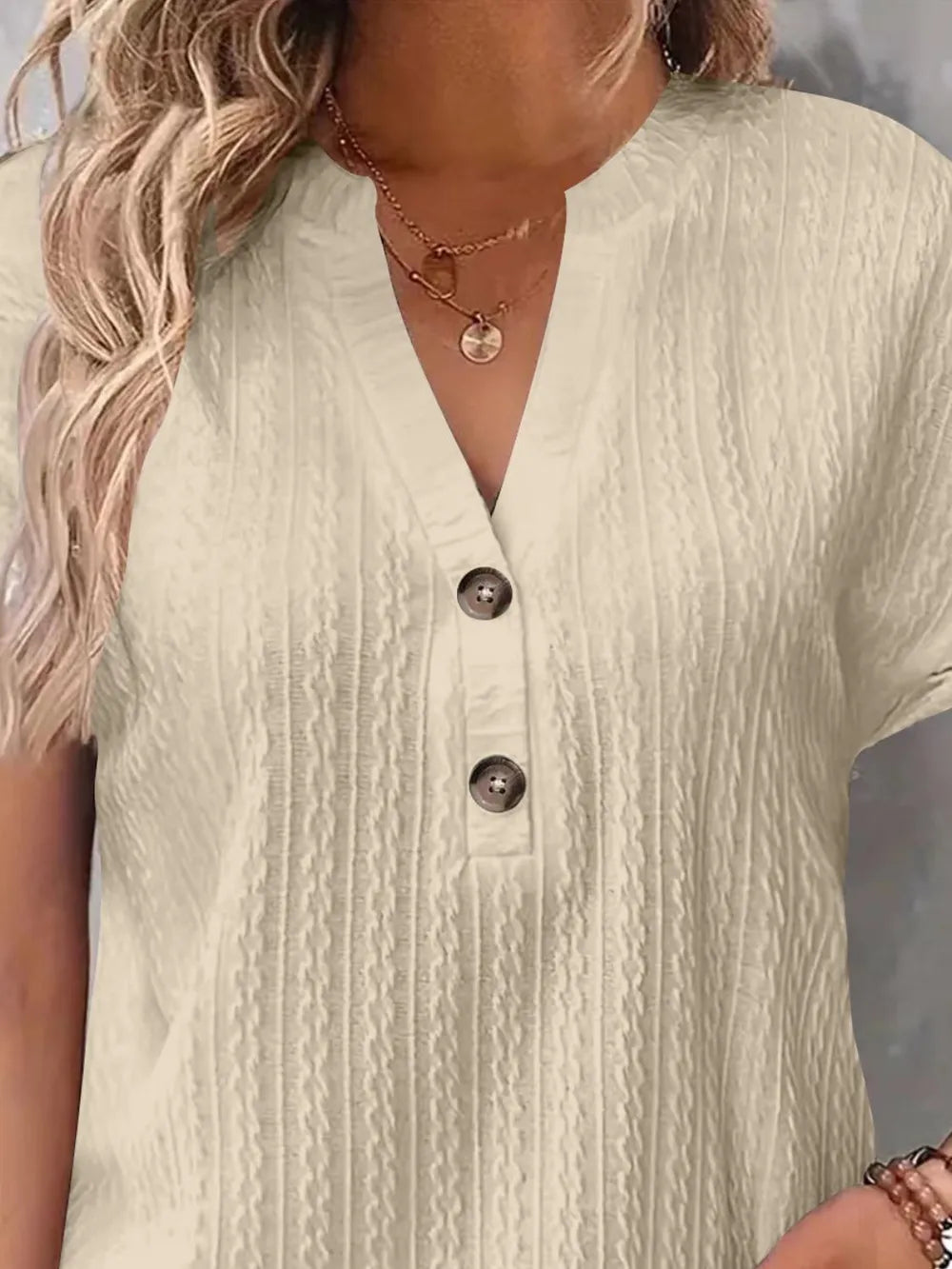 Textured Notched Short Sleeve Top