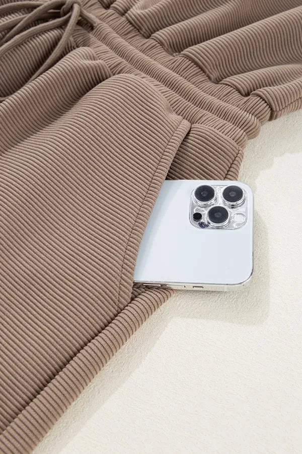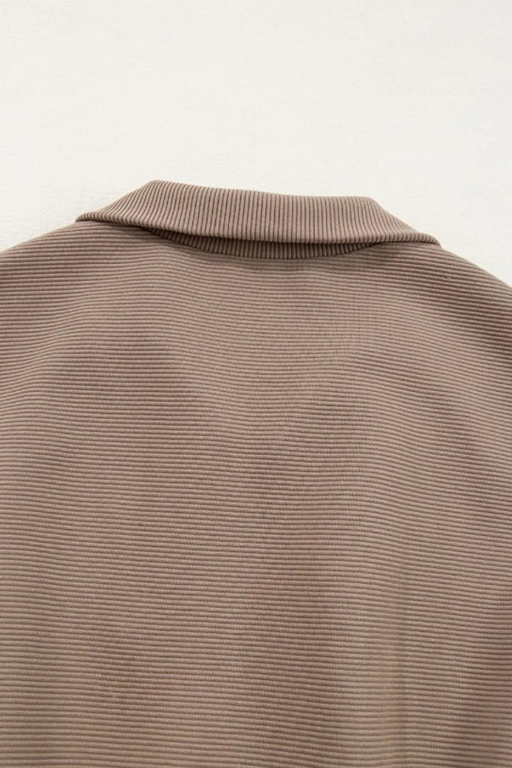 Textured Short Sleeve Half Zip Drawstring Waist Romper