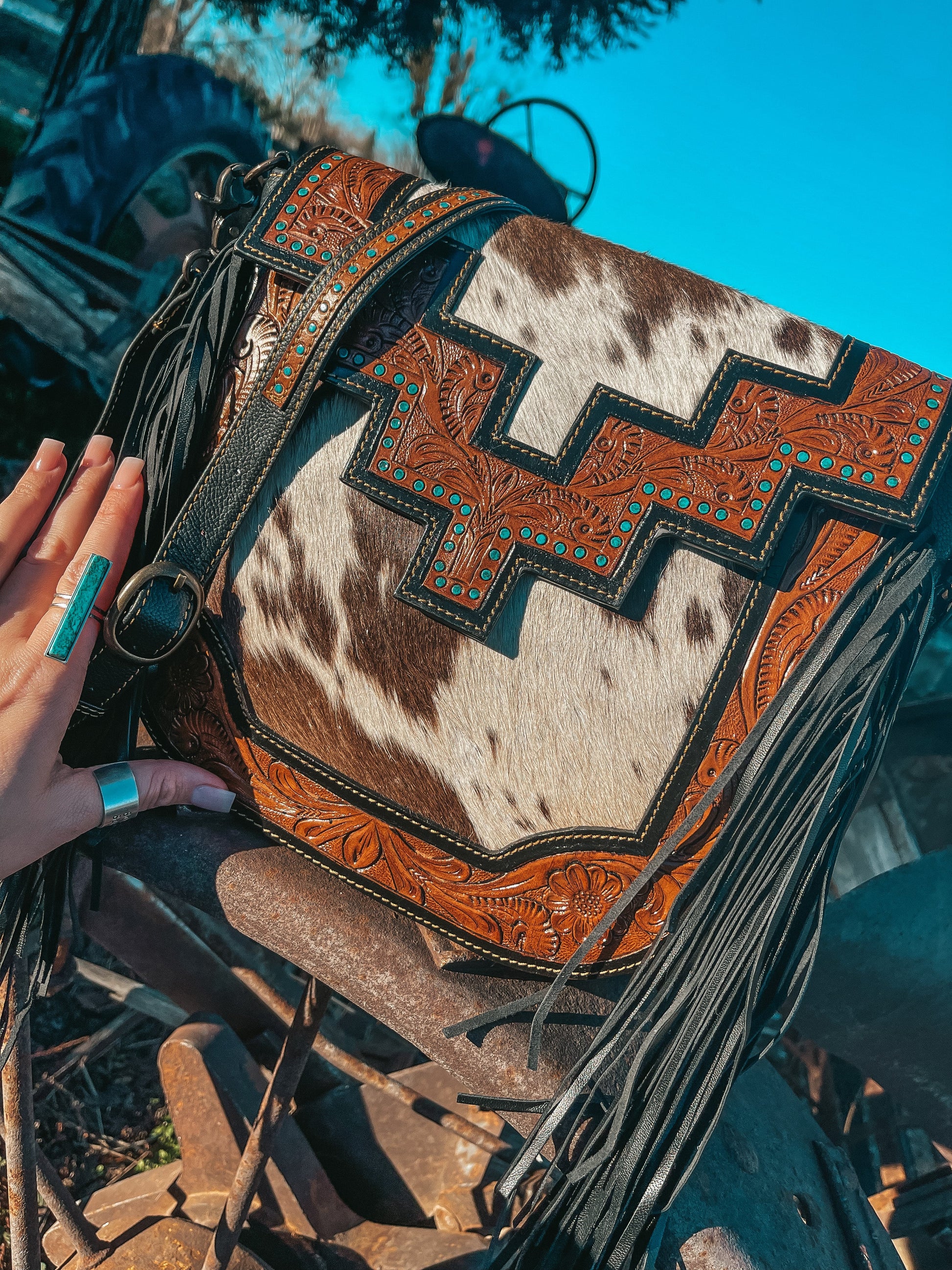 Featuring genuine cowhide. Please note each purse and wallet is one of a kind as each is made with a brand new unique cowhide. Your purse will not be a replica of the cowhide pictured and will be one of a kind in every single way. Congratulations you have found yourself a one of a kind product no other woman will ever be caught carrying.