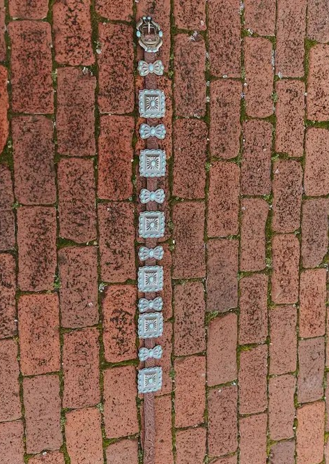 Add some western flair to your outfit with The Morgan Genuine Leather Concho Belt! Crafted from printed genuine leather, this belt boasts vintage silver ribbons and squared conchos with turquoise stones for a unique touch. Pair it with jeans or a dress for a stylish look. Yeehaw!