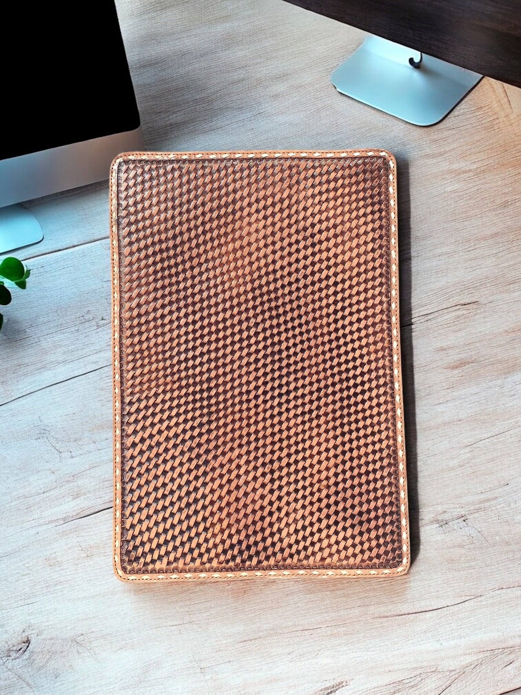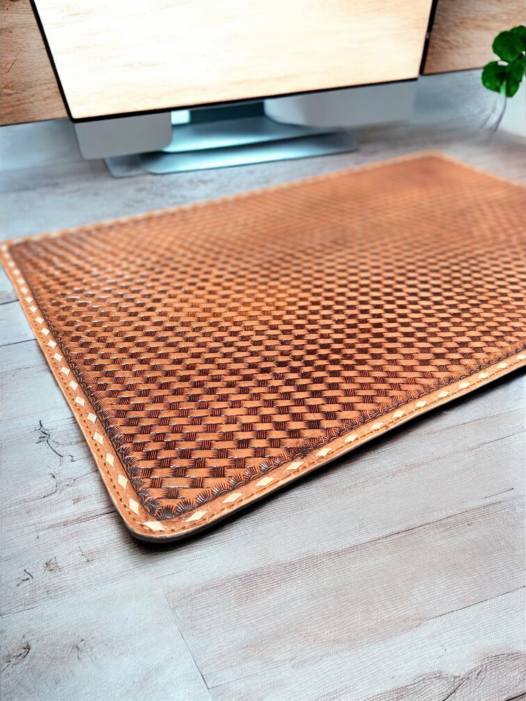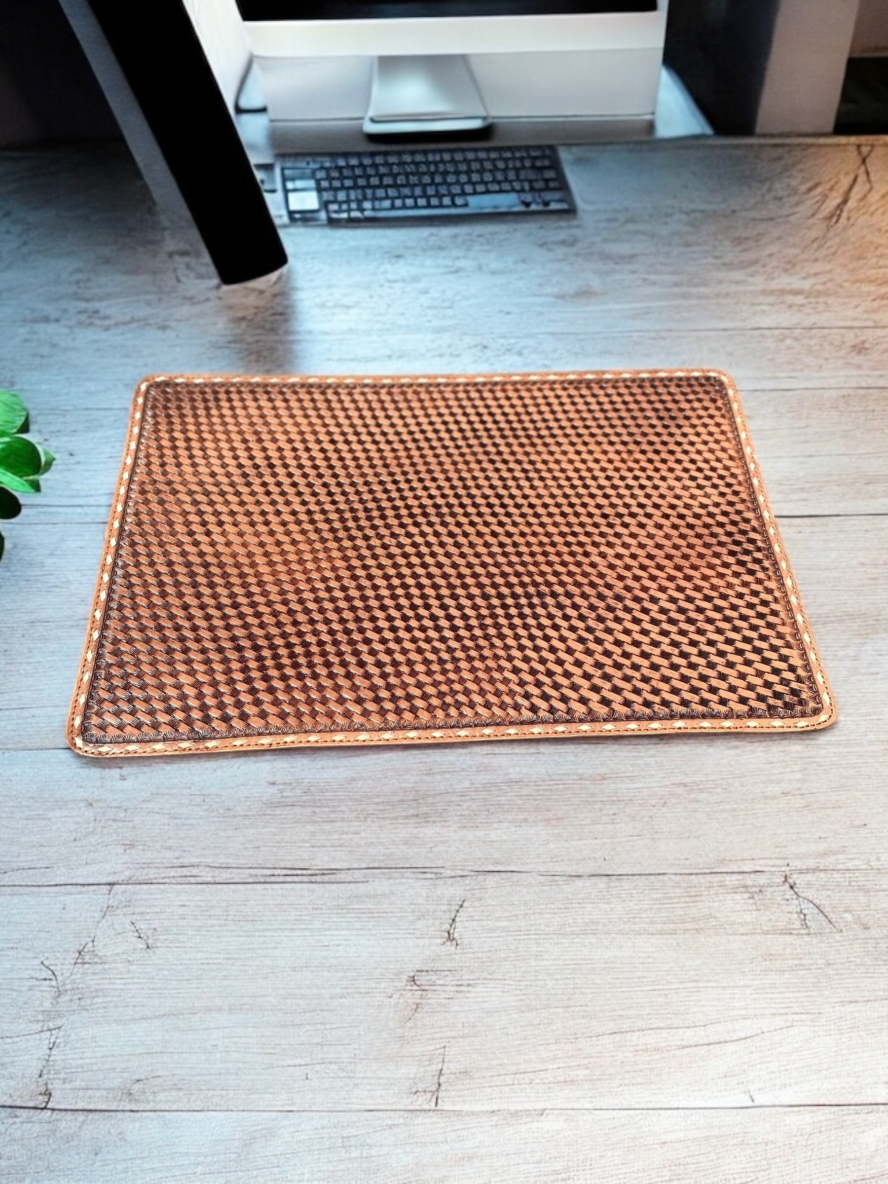 Elevate your workspace with our Tooled Leather Desktop Mat, a perfect blend of functionality and elegance. Crafted from high-quality leather, this mat features intricate tooling that adds a touch of sophistication to any desk. Its durable surface protects your workspace from scratches and spills while providing a smooth writing experience. Ideal for professionals and creatives alike, this desktop mat not only enhances your productivity but also serves as a stylish statement piece in your office or home.