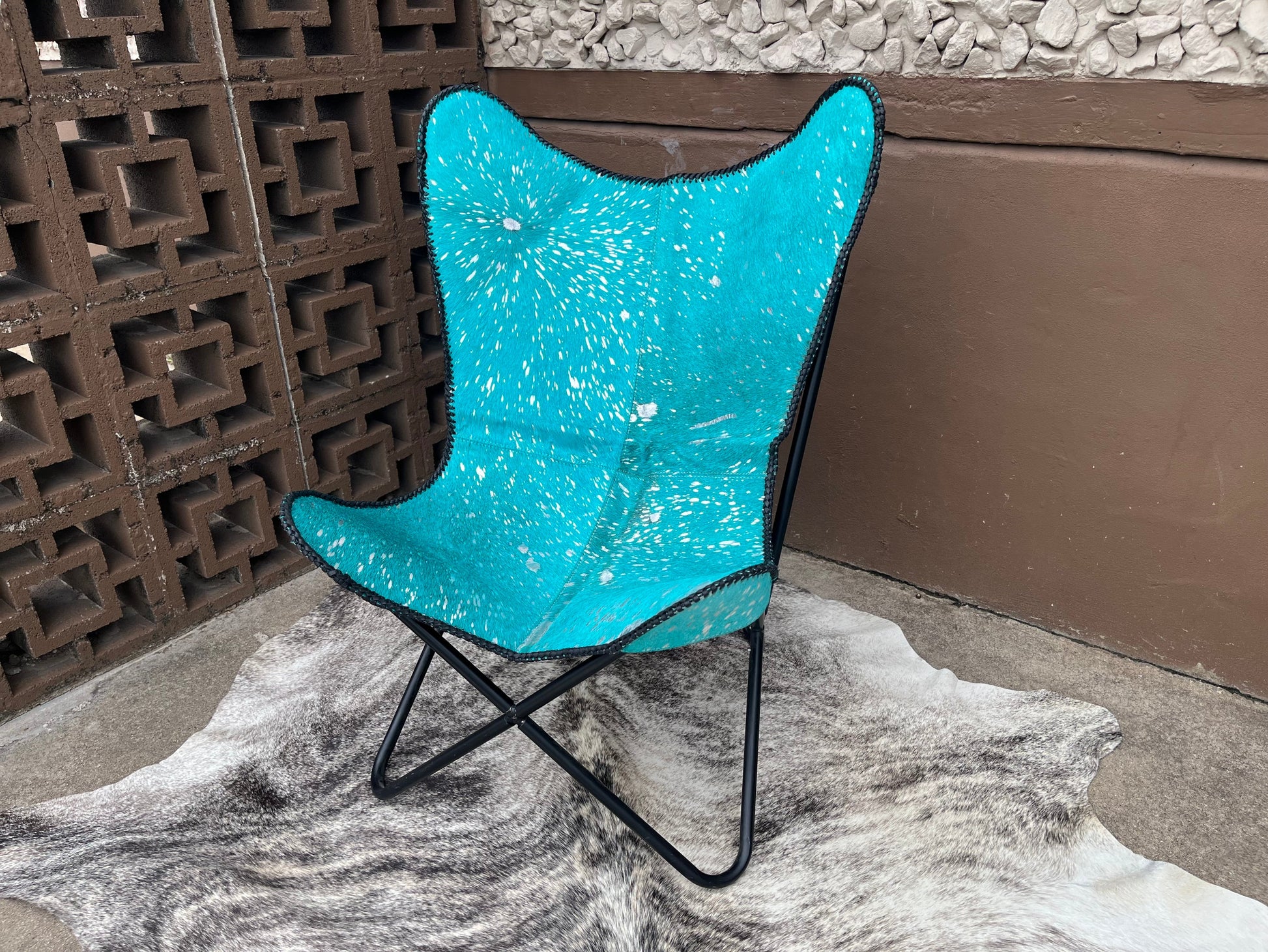 Turquoise Acid Wash Cowhide Butterfly Chair