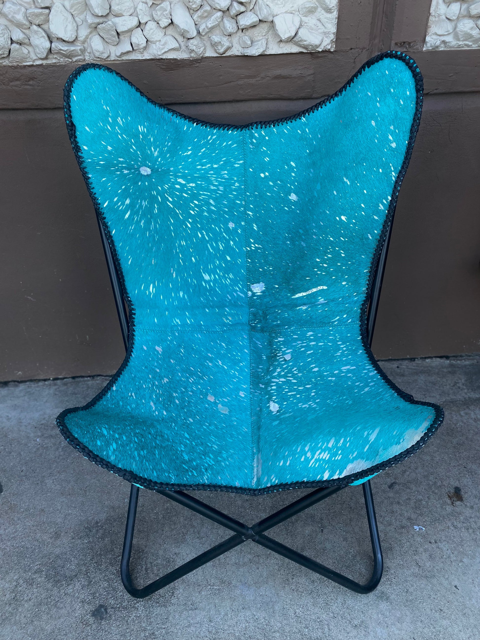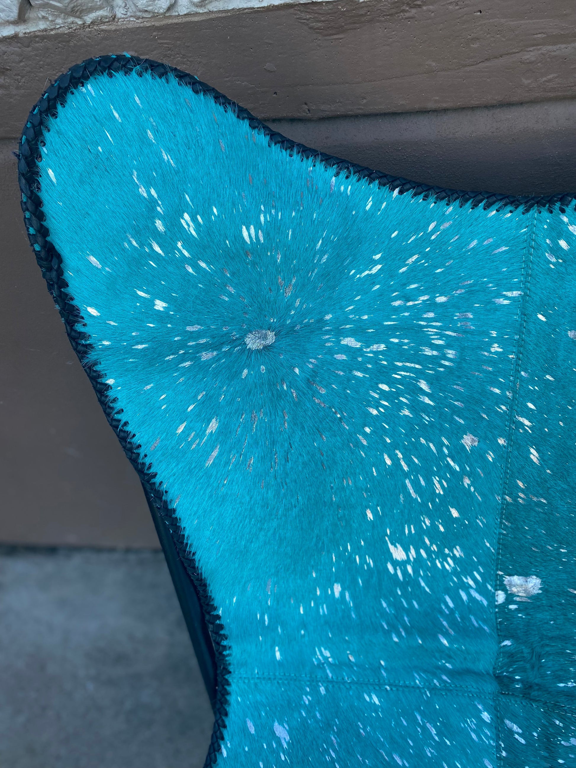 Turquoise Acid Wash Silver Cowhide Butterfly Chair