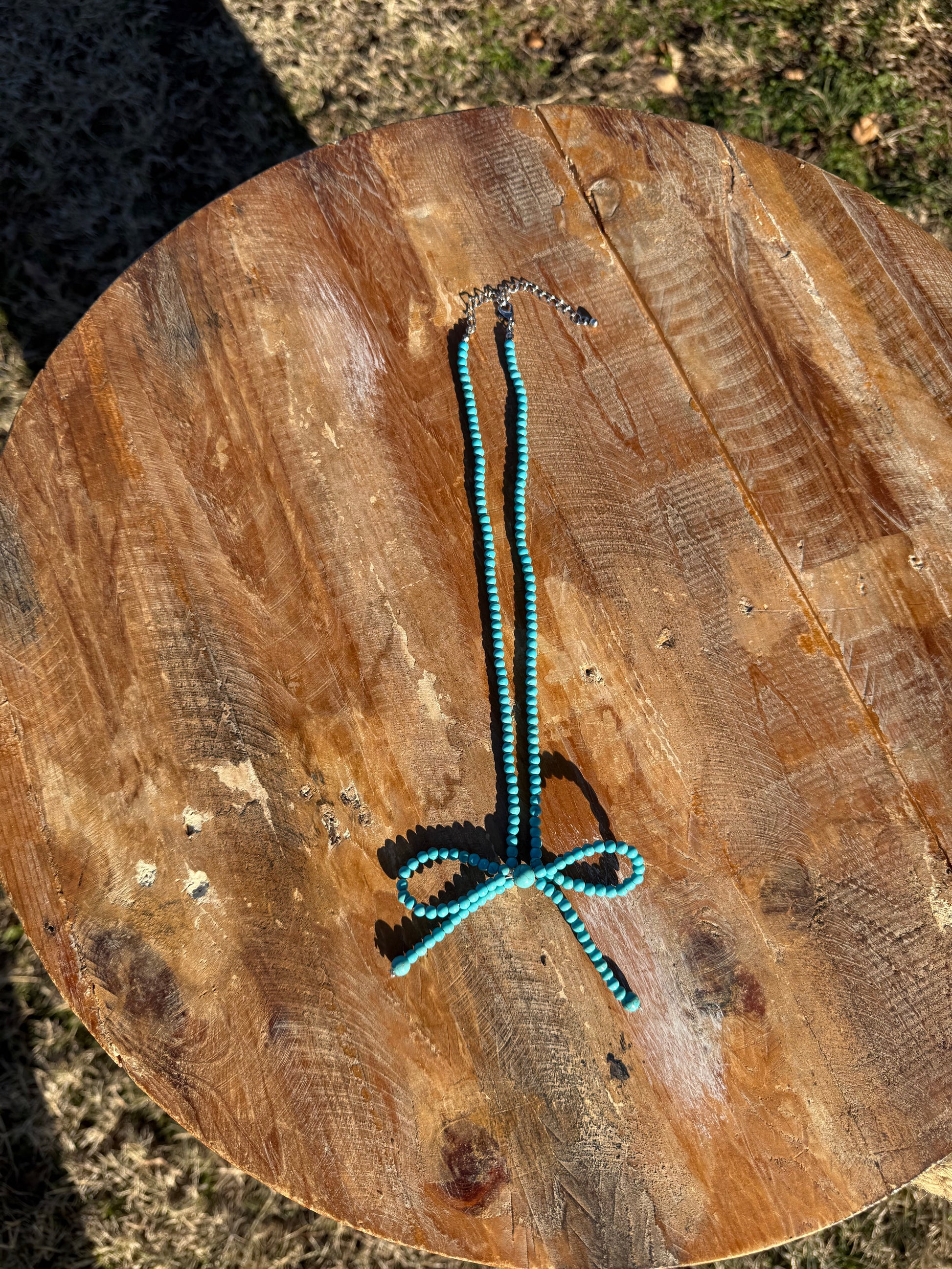 Turquoise Beaded Bow Necklace
