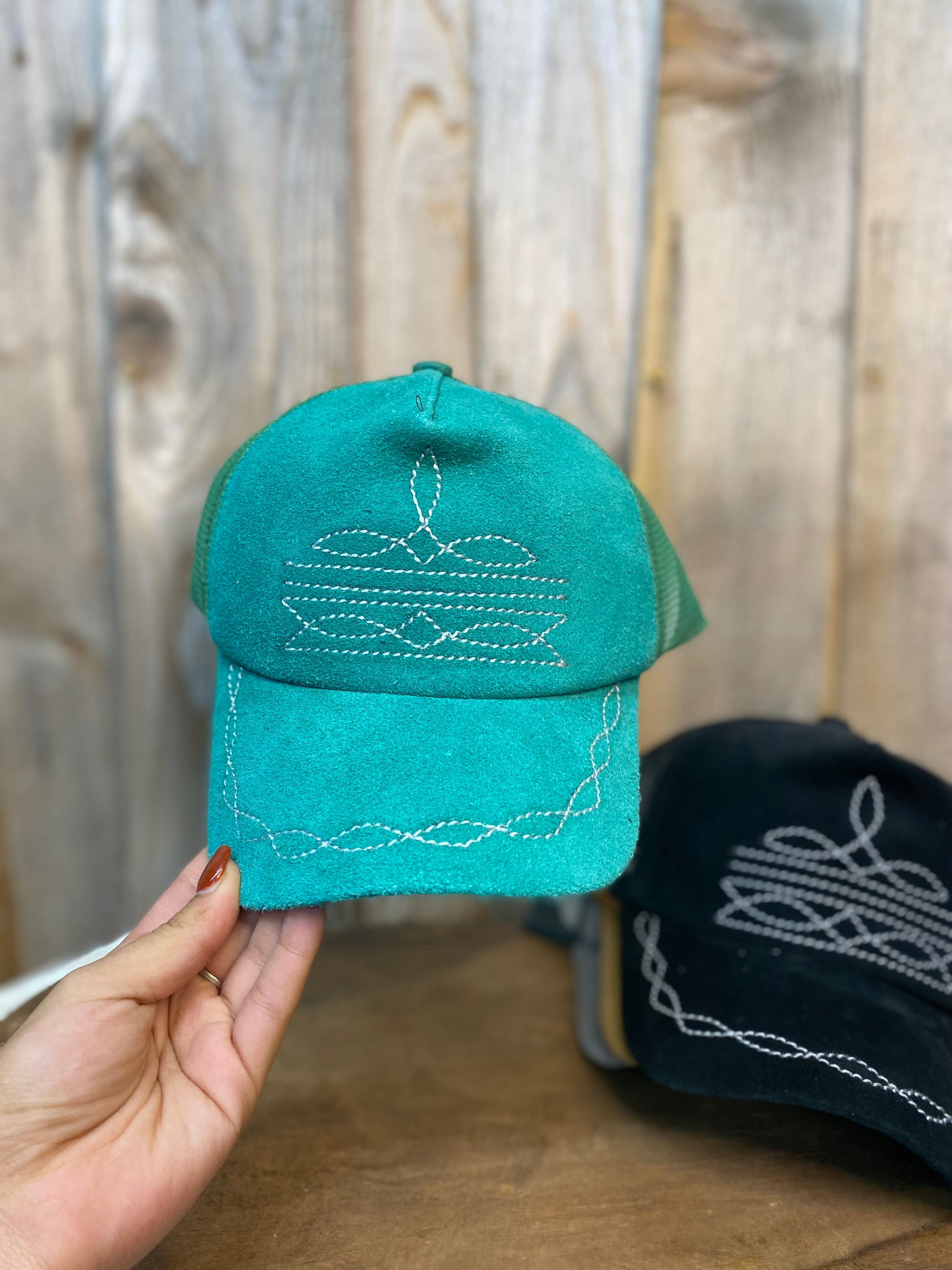 Turquoise BootStitch Suede Leather Cap