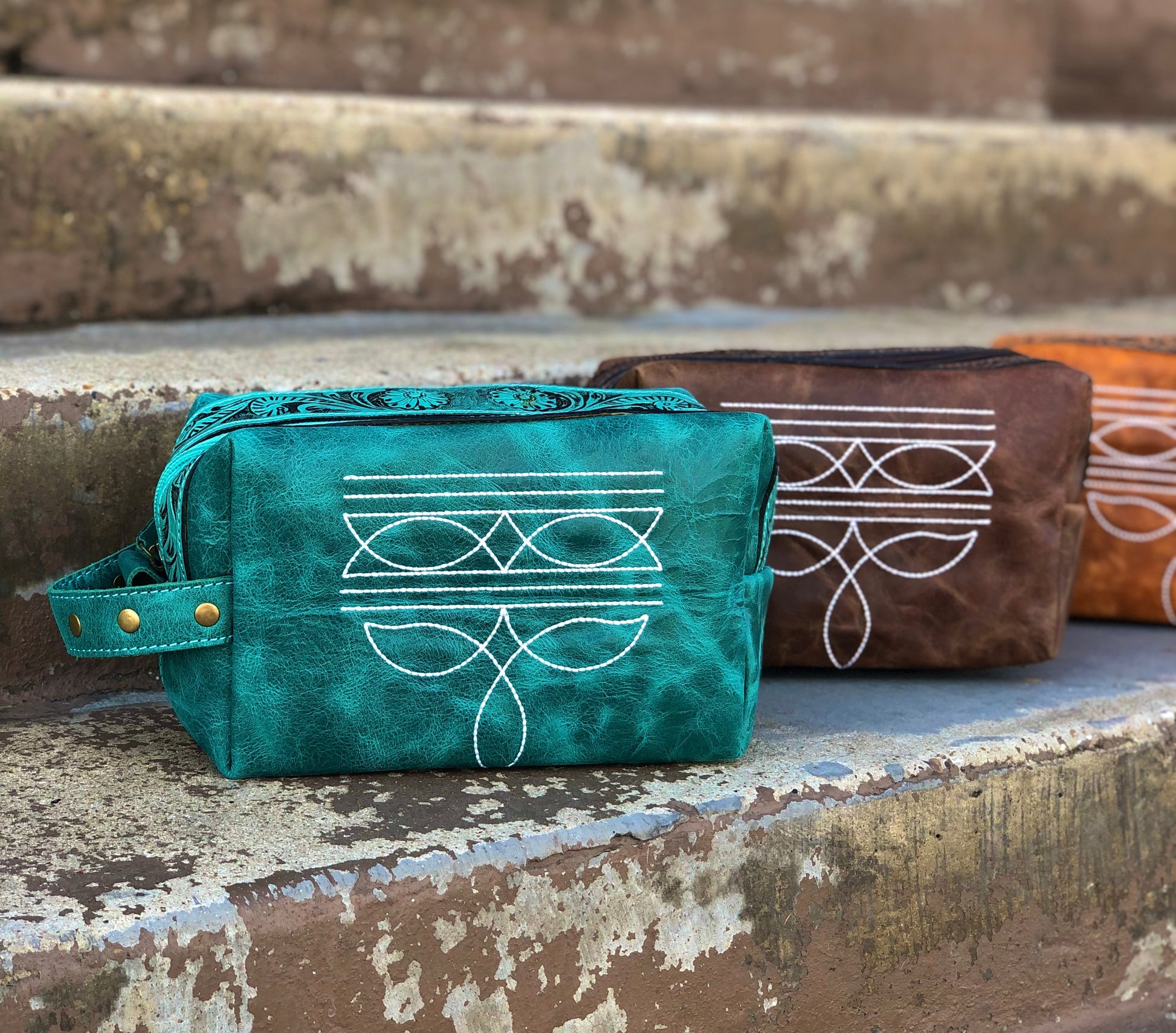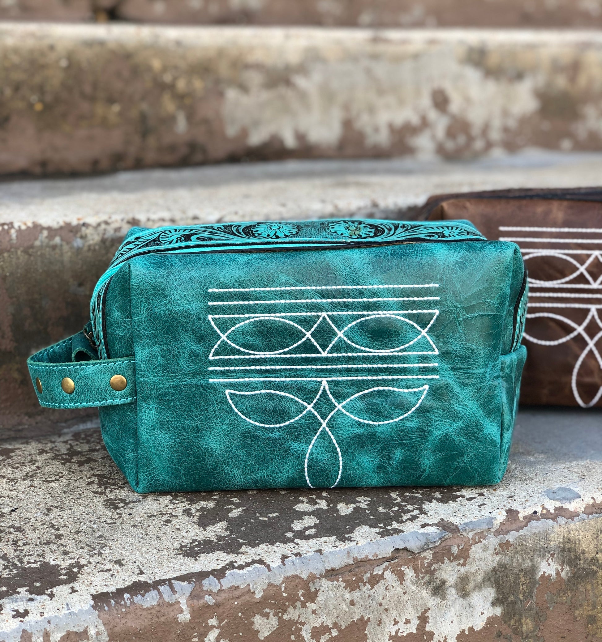 Turquoise Bootstitch Tooled & Leather Toiletry Bag
