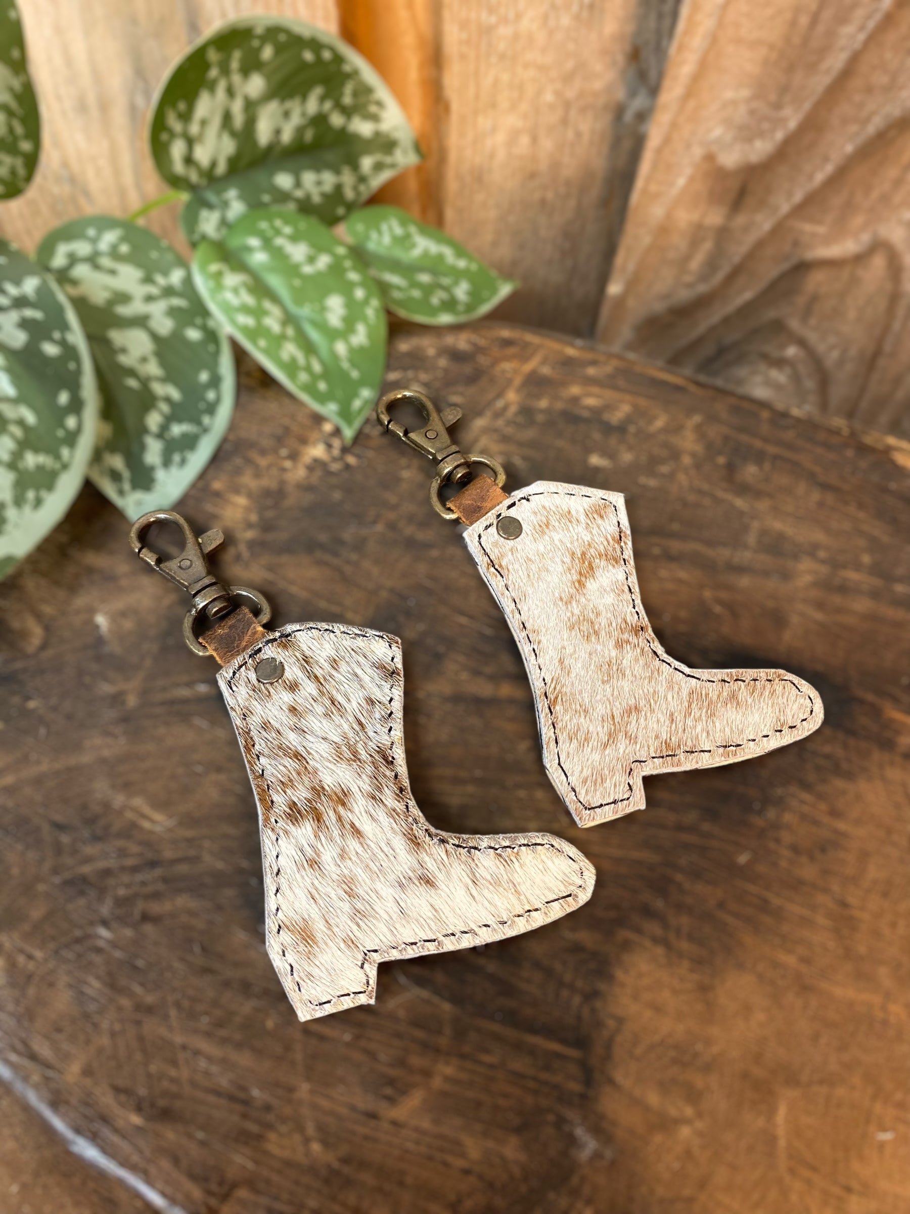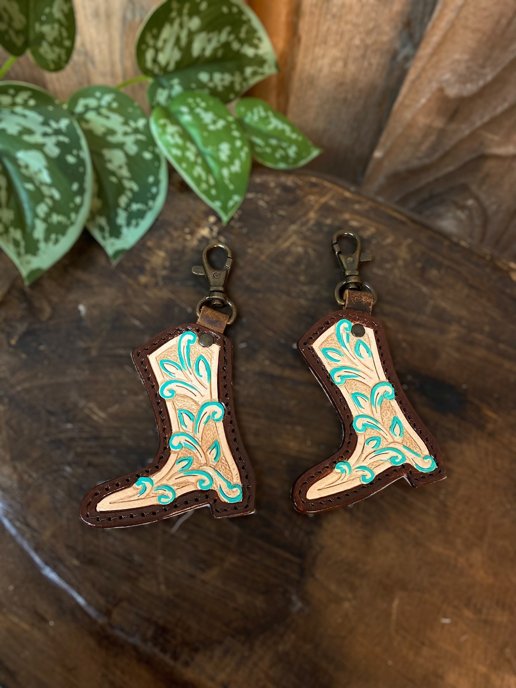 The Cowhide & Tooled Leather Boot Keychain is a stylish and functional accessory, expertly crafted from high-quality cowhide and intricately tooled leather. This unique keychain features a charming boot design, making it an ideal gift for boot enthusiasts and a perfect addition to any keyring. Its durable materials ensure longevity, while the artisanal craftsmanship adds a touch of elegance, making it a standout piece for everyday use.