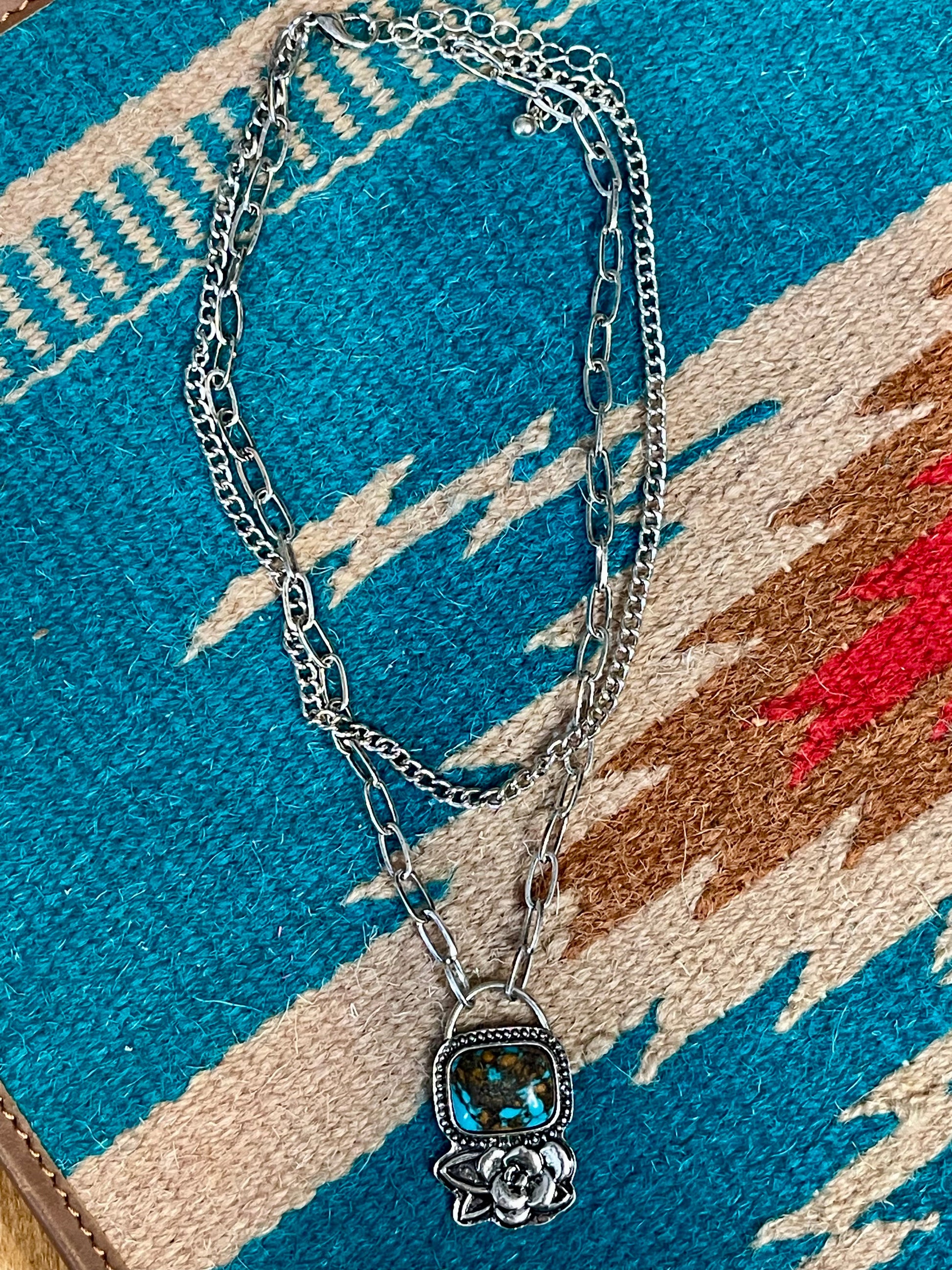 Turquoise Stone Flower Layer Necklace