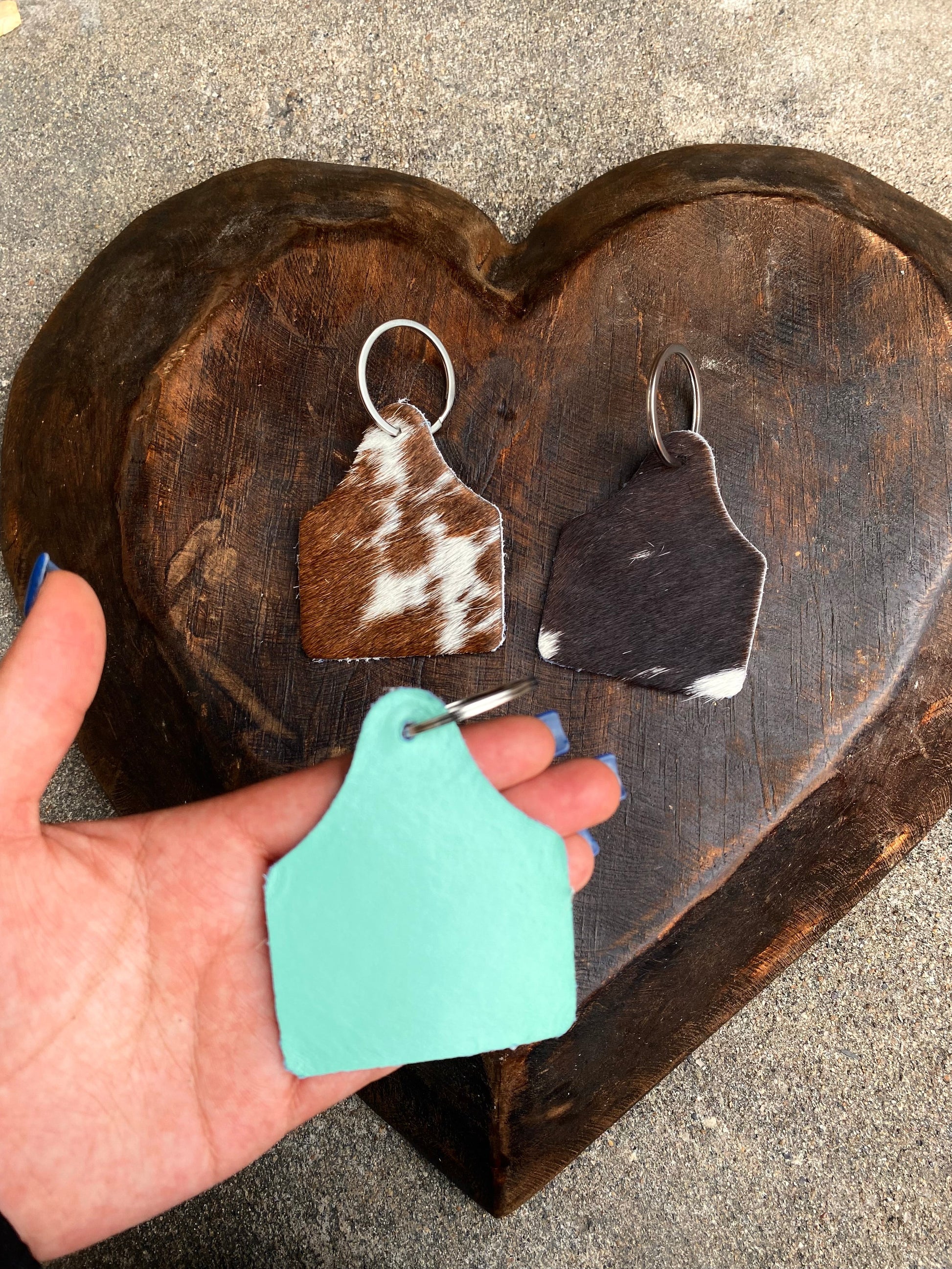 Turquoise Tooled Cowhide Keychains 10 pcs