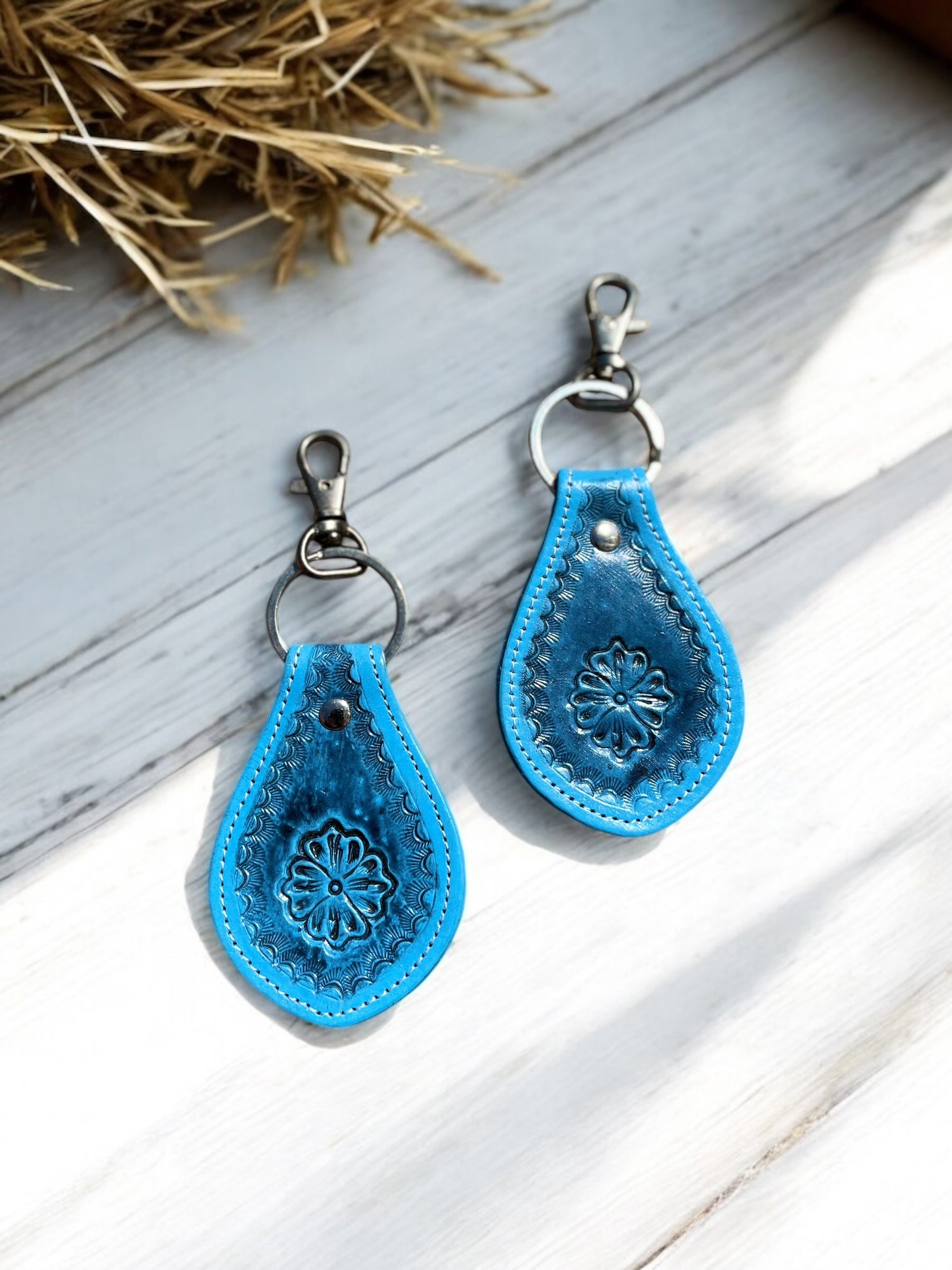 Turquoise Tooled Leather Keychains