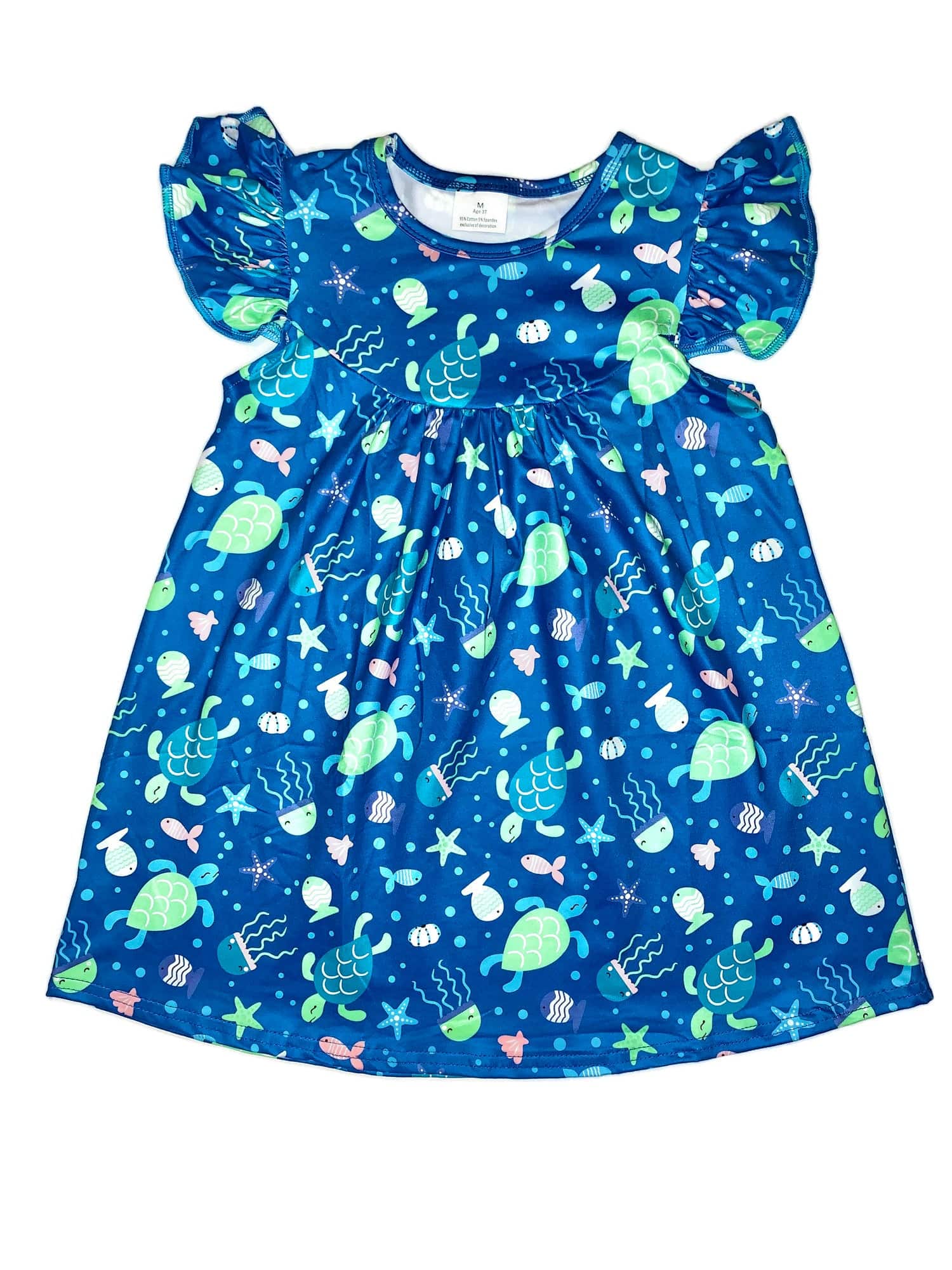 Turtles! This turtle dress is adorable! Made out of Milk Silk which is 95% Cotton and 5% Spandex not only is this dress ultra comfortable but it is also Wrinkle Free!