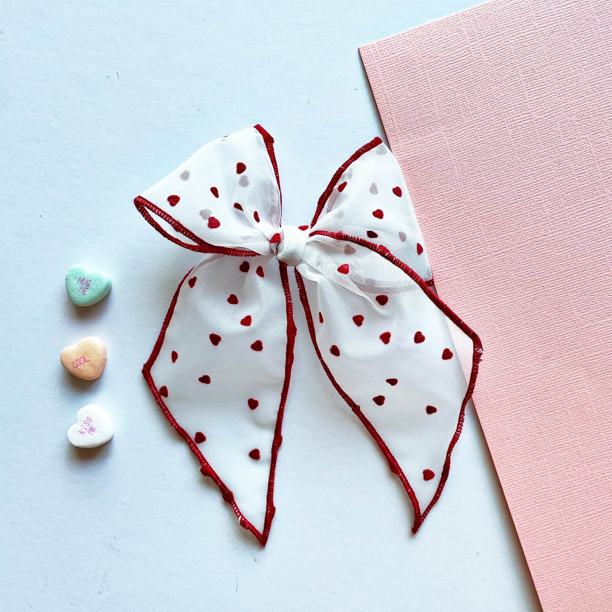 Vintage Flocked Sheer Red Heart Elle Bow