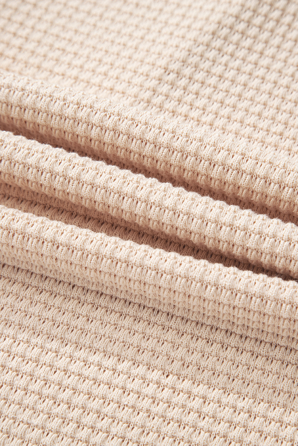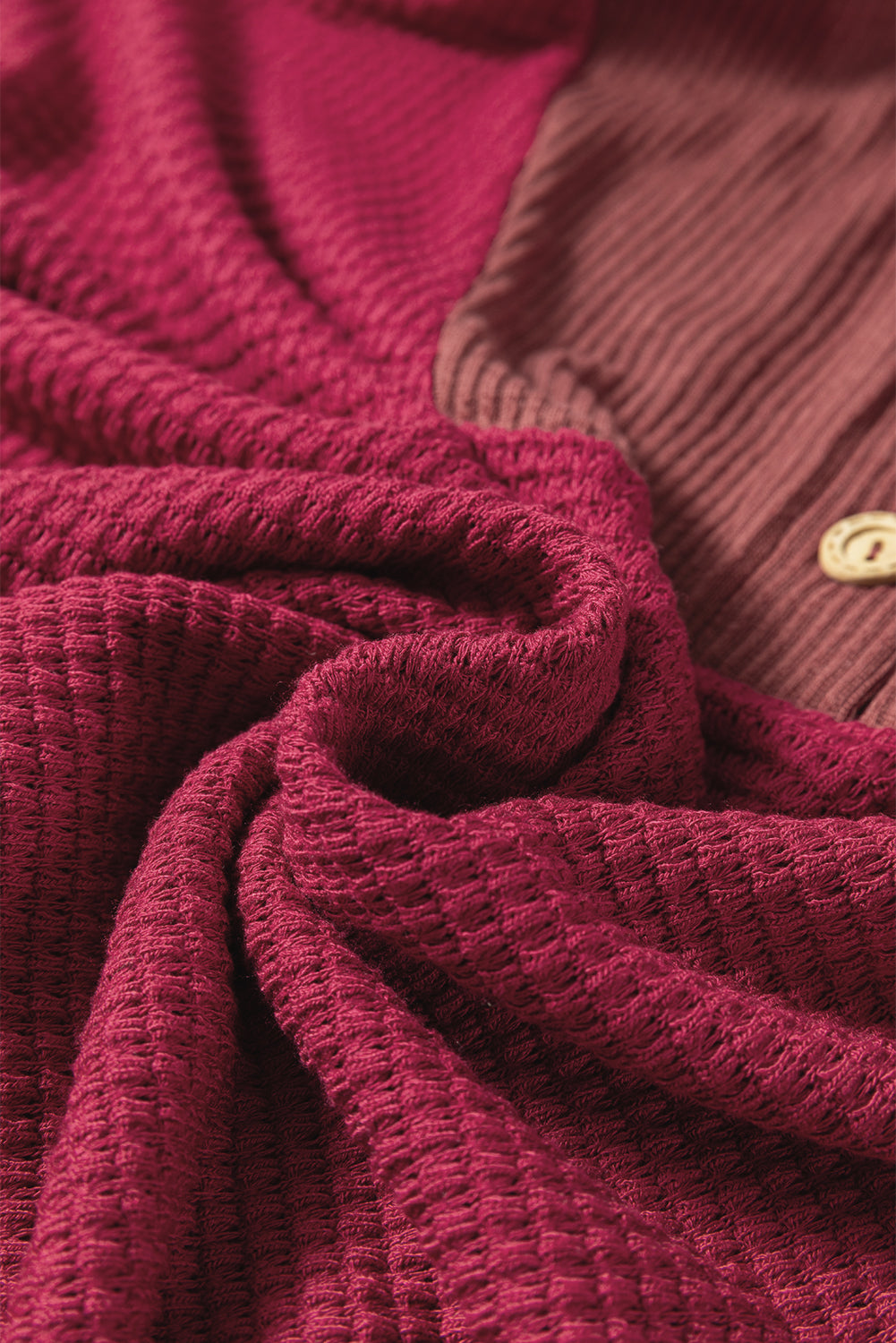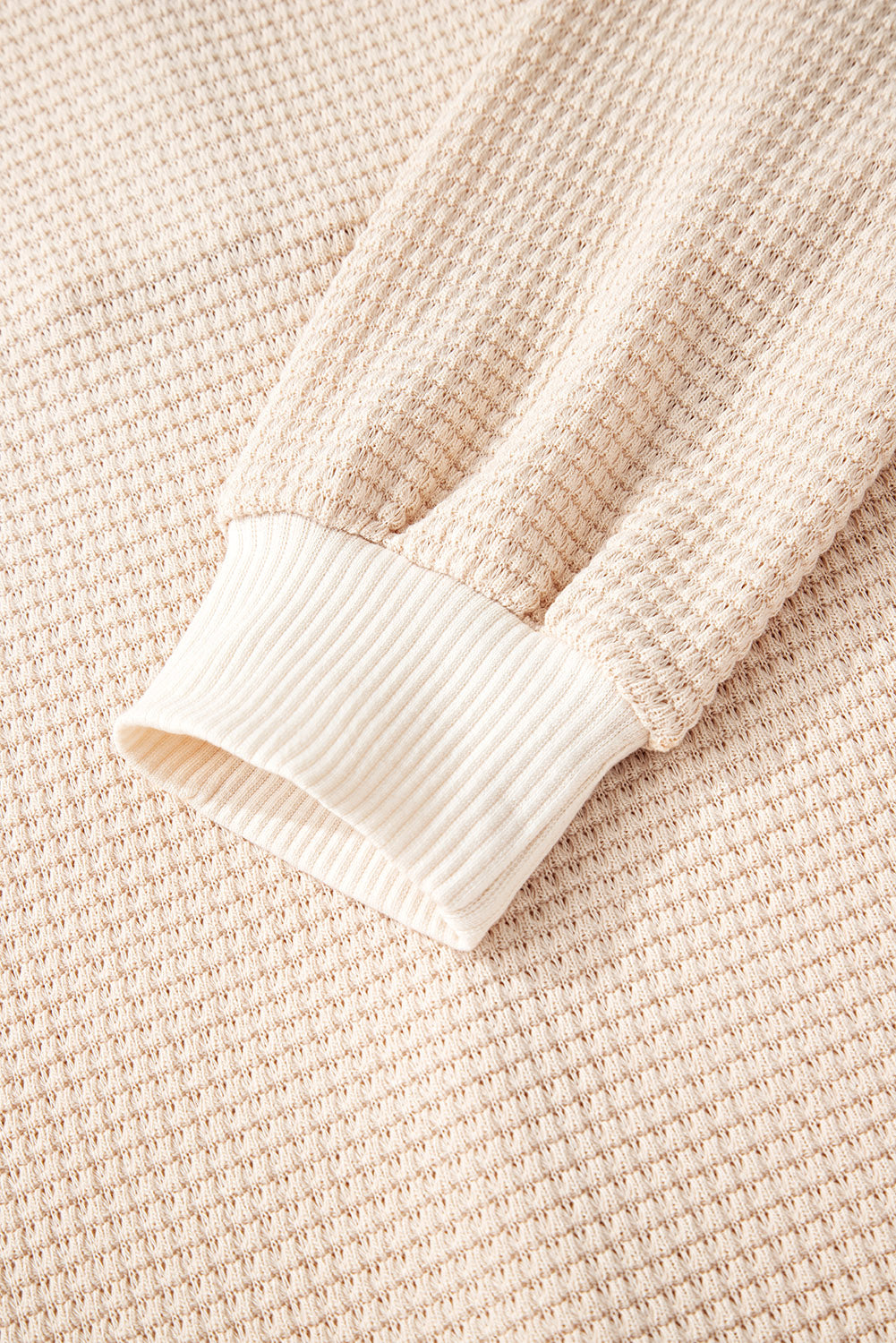 Waffle Patchwork Drop Shoulder Long Sleeve Hooded Top