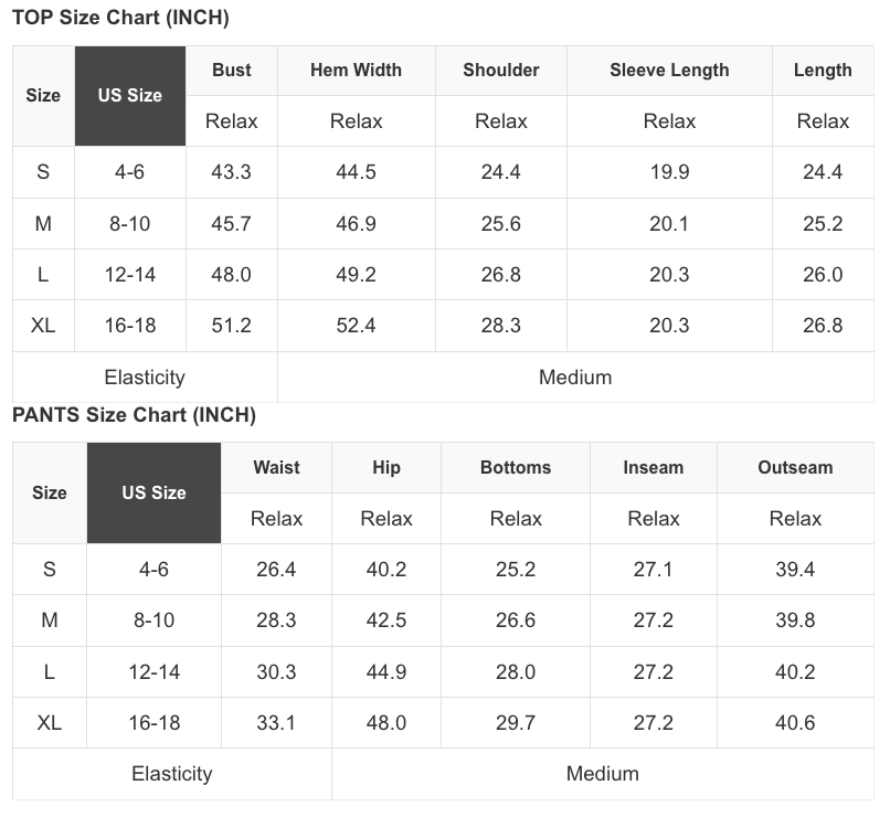 See size chart for approximate measurements