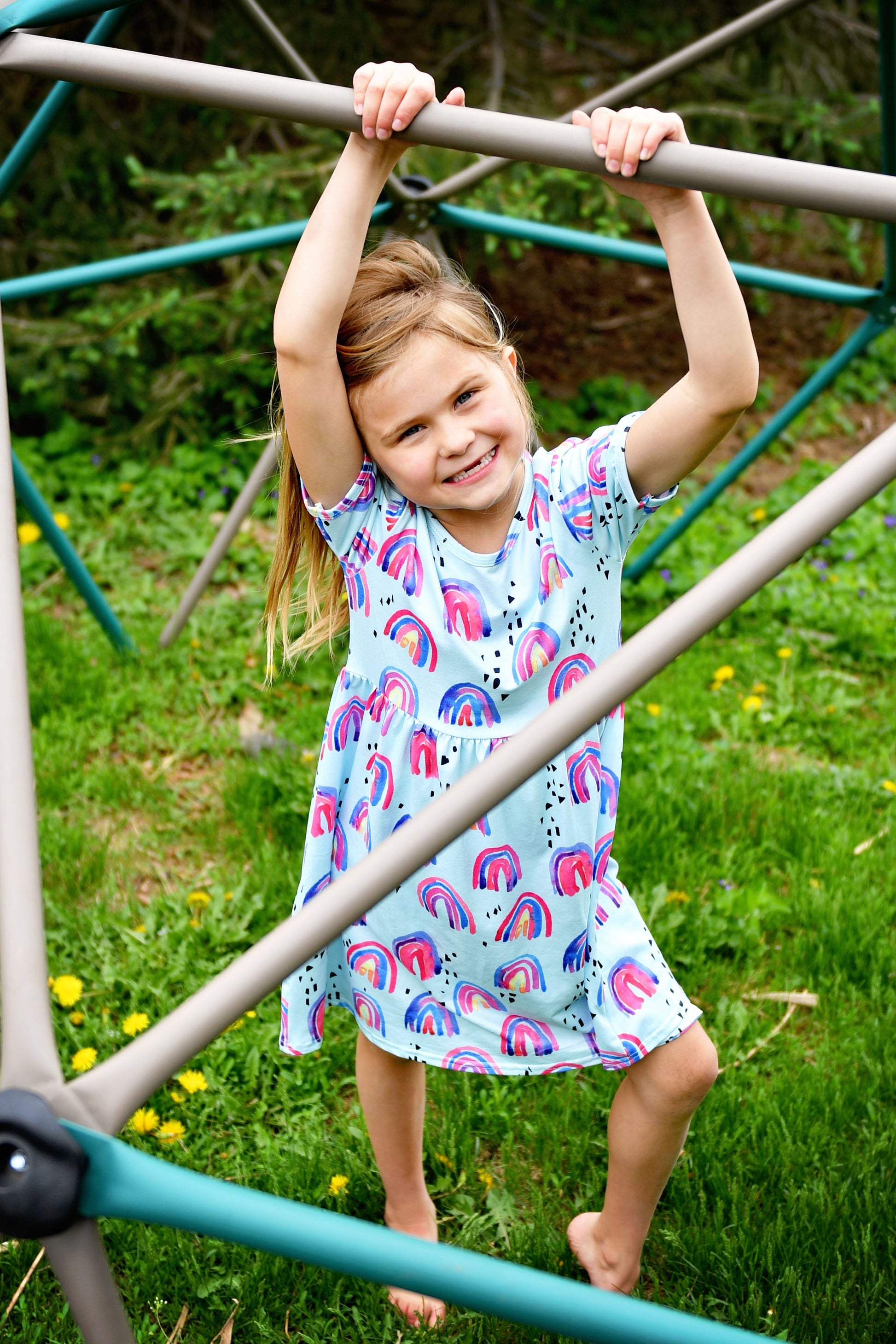 After every storm comes a rainbow! Made out of Milk Silk which is 95% Cotton and 5% Spandex not only is this dress ultra comfortable but it is also Wrinkle Free!