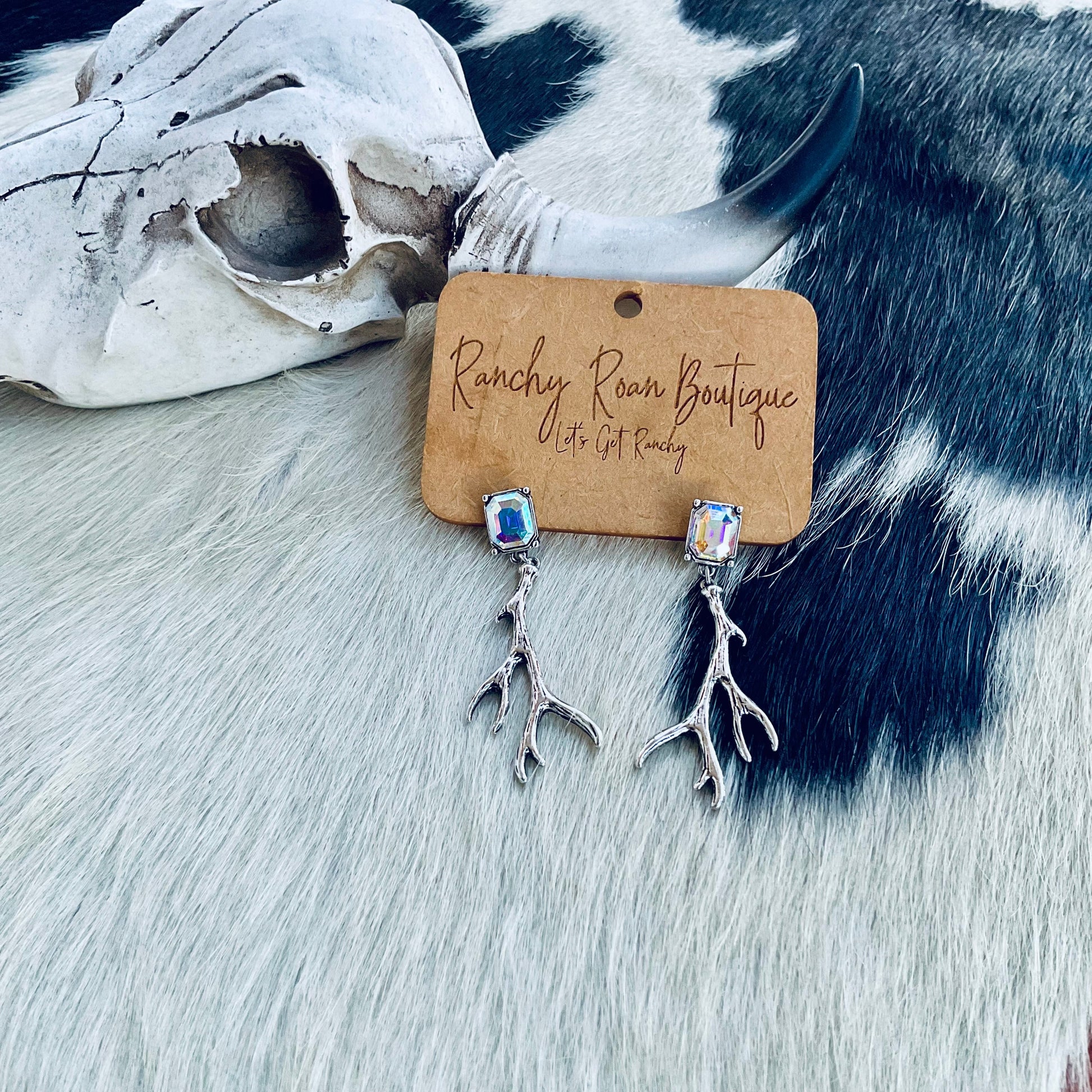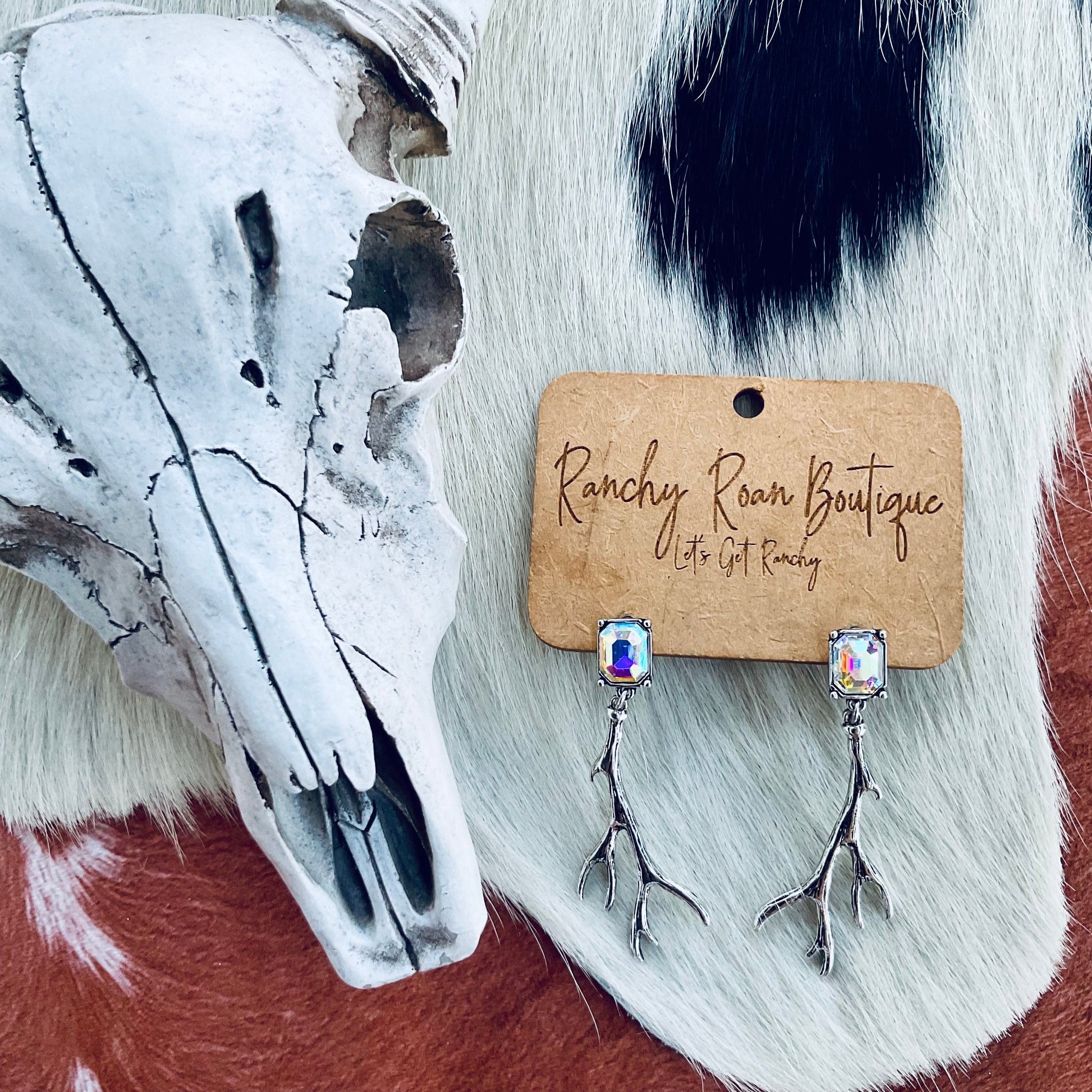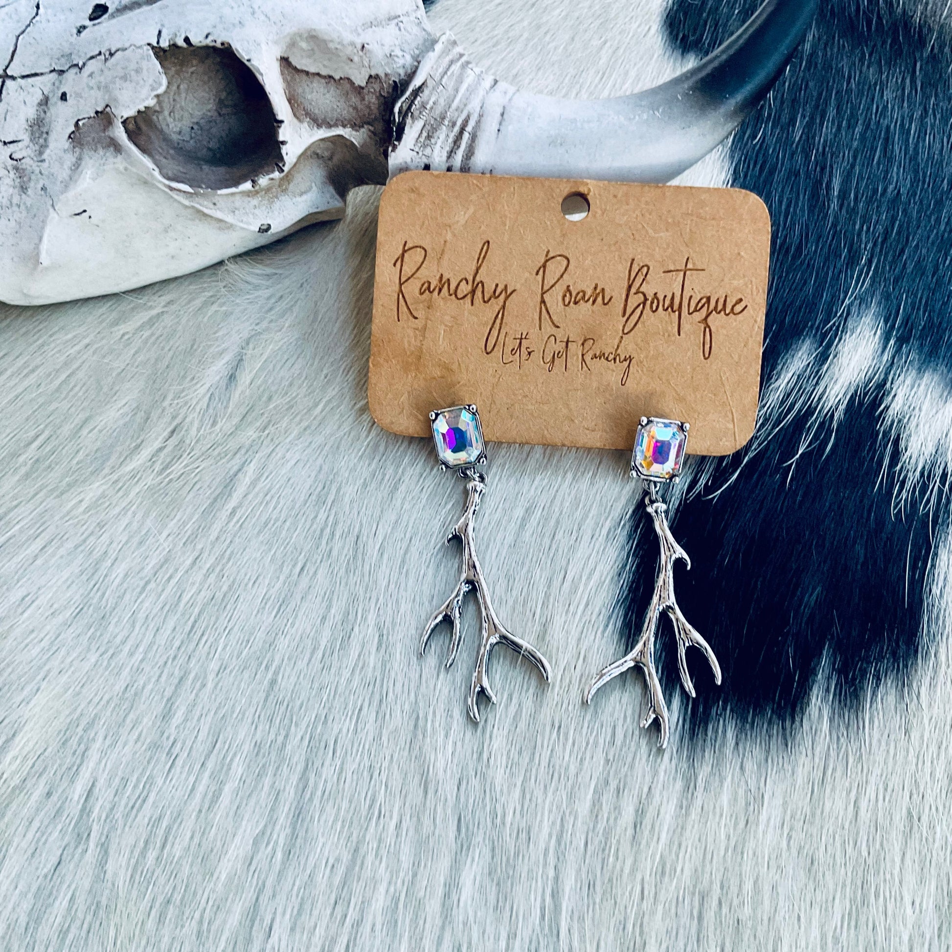 Add a touch of rustic charm to your Western wardrobe with our “Western Antler Stone Stud Earrings.” These unique earrings feature burnished silver antlers with sparkling AB stones, offering the perfect blend of rugged Western style and elegant flair. Ideal for boutique owners looking to offer their customers a statement piece that reflects the beauty of nature and Western fashion. These earrings are perfect for any occasion, from casual ranch days to nights out on the town.