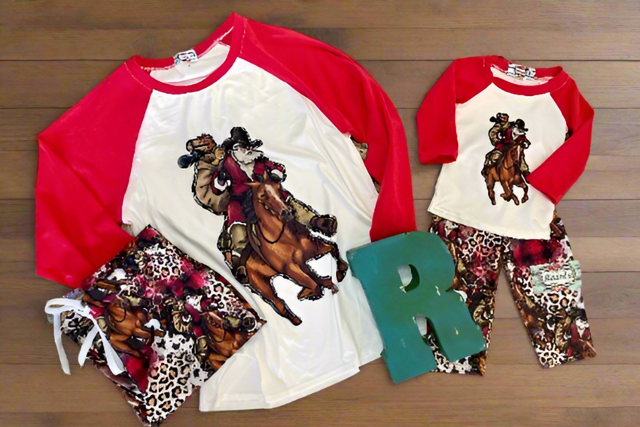 Western Christmas Pajamas, Santa Cowboy and Horse Pajamas