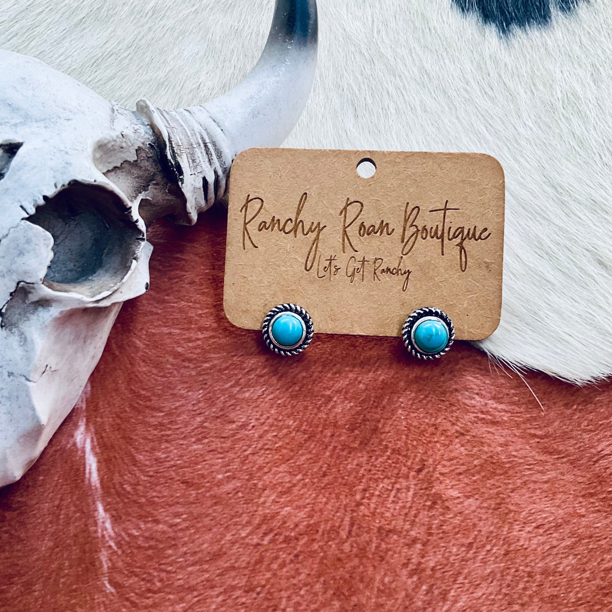 Add a touch of Southwestern flair to your accessory collection with our “Western Design Turquoise Stone Stud Earrings.” Featuring burnished silver settings and striking turquoise stones, these earrings are perfect for completing any Western-inspired look. The vintage-style detailing around the stone adds just the right amount of rustic charm, making these earrings a versatile choice for both casual wear and dressier occasions.