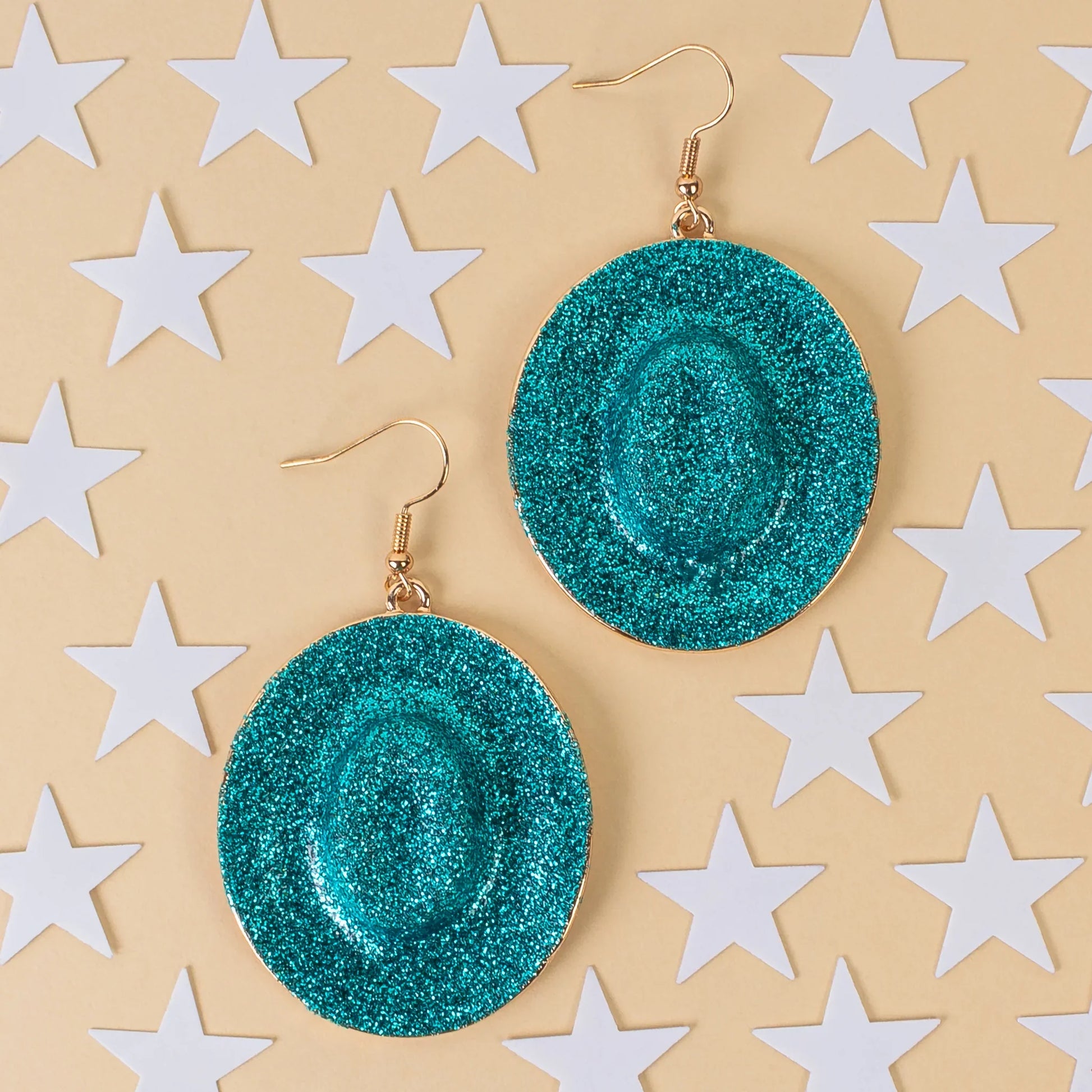 Western Glitter Cowboy Hat Earrings - Turquoise • Dangle Earrings