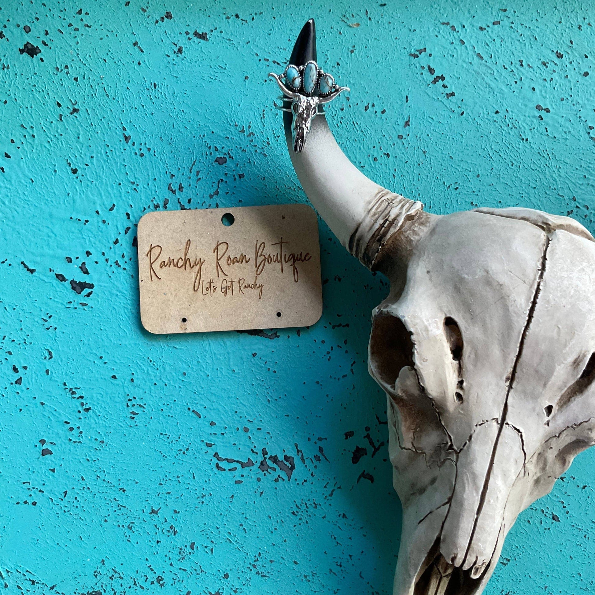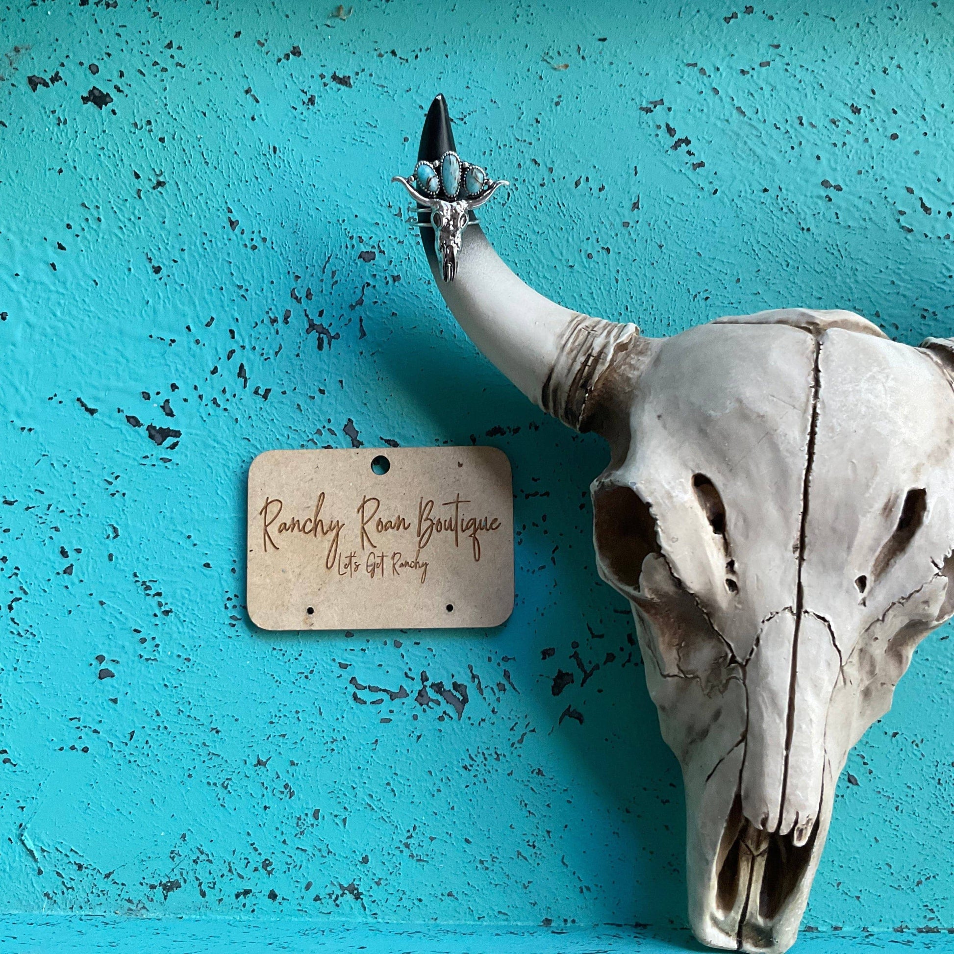 Western Hand Craft Stone Steer Head Adjustable Ring
