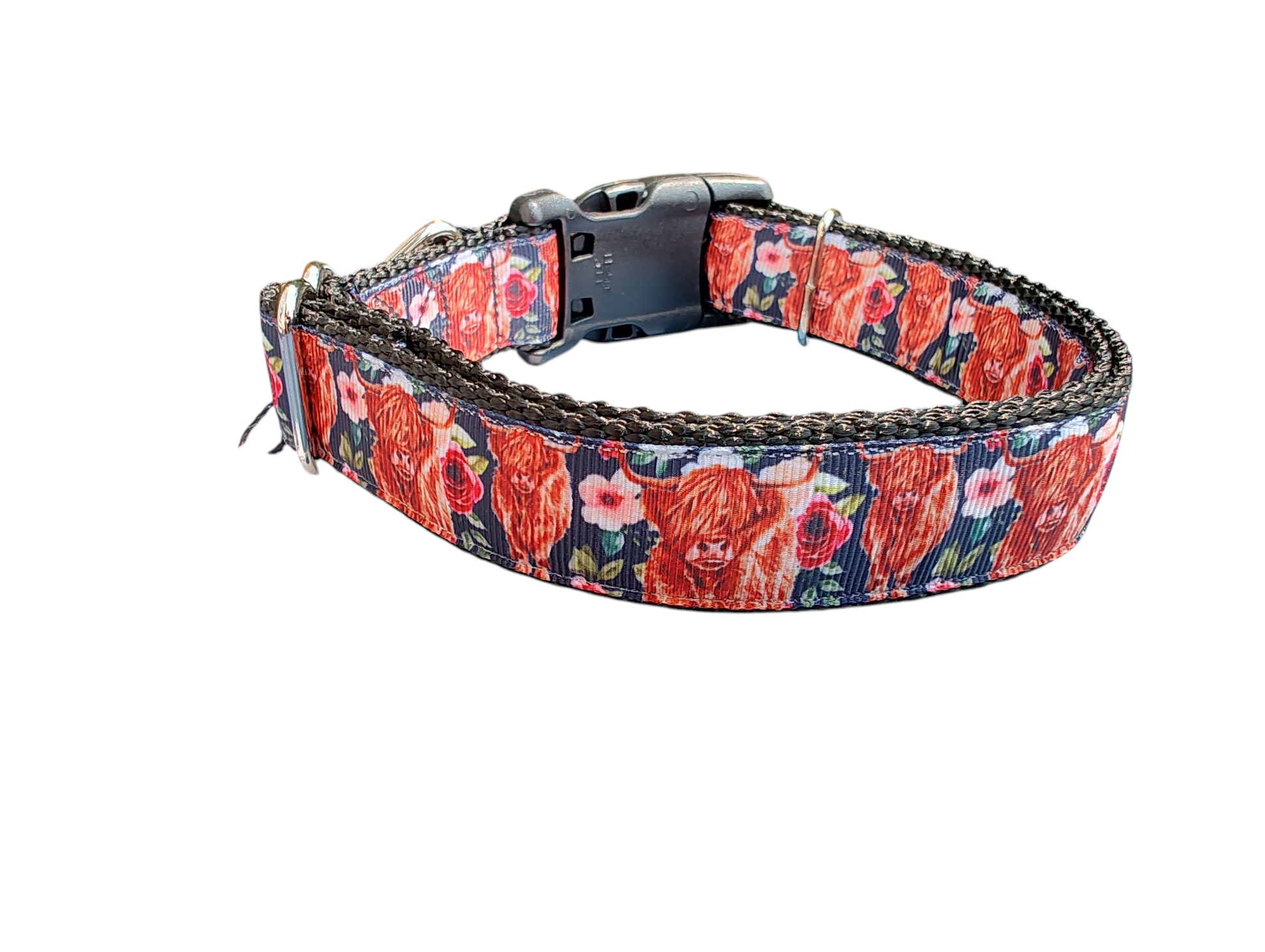 Western Highland Cow Flowers 2 Nylon Dog Collar