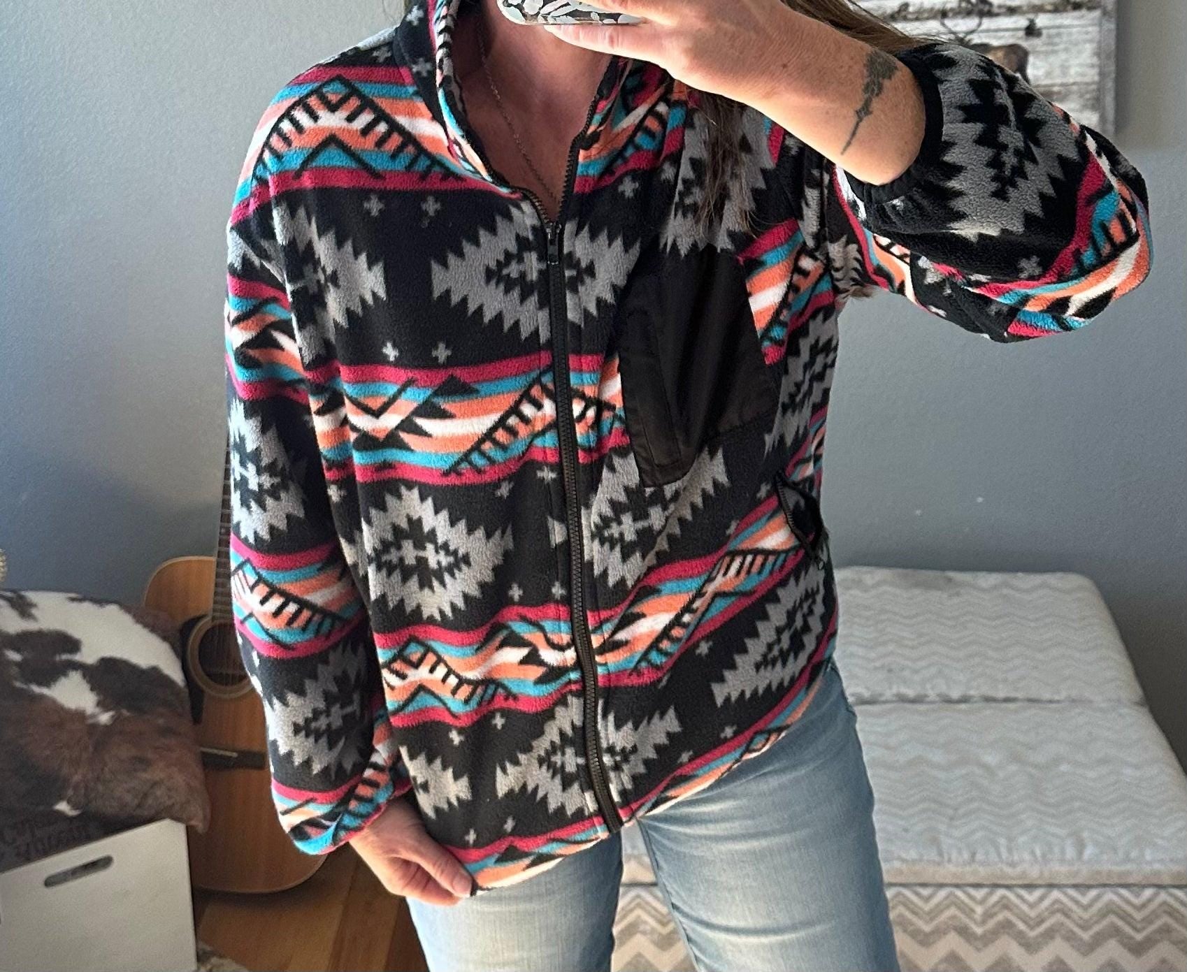 Western Jacket Women, Fleece Zip Up Jacket, Aztec Jacket, Spring Fleece Jacket