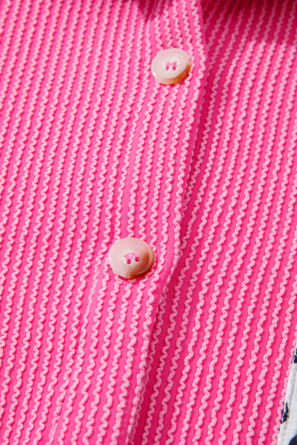 Bring a wild twist to your wardrobe with this shacket. This cozy, corded knit piece combines casual comfort with bold leopard patches for a playful, standout look. Perfect for layering on cooler days, it effortlessly adds personality and warmth to any outfit. Embrace your inner trendsetter with this fun and fashionable shacket! Polyester/Viscose/Spandex