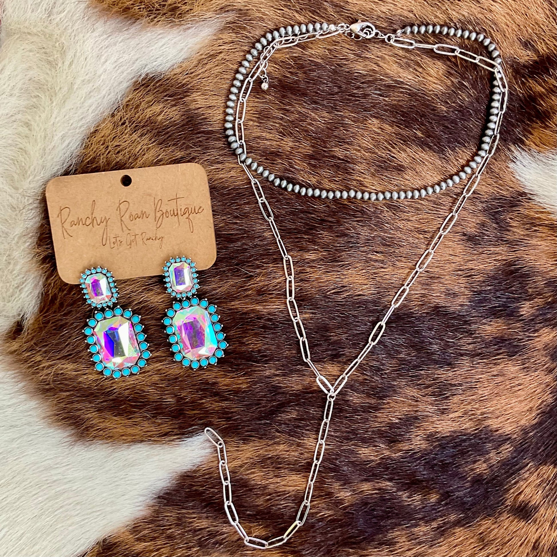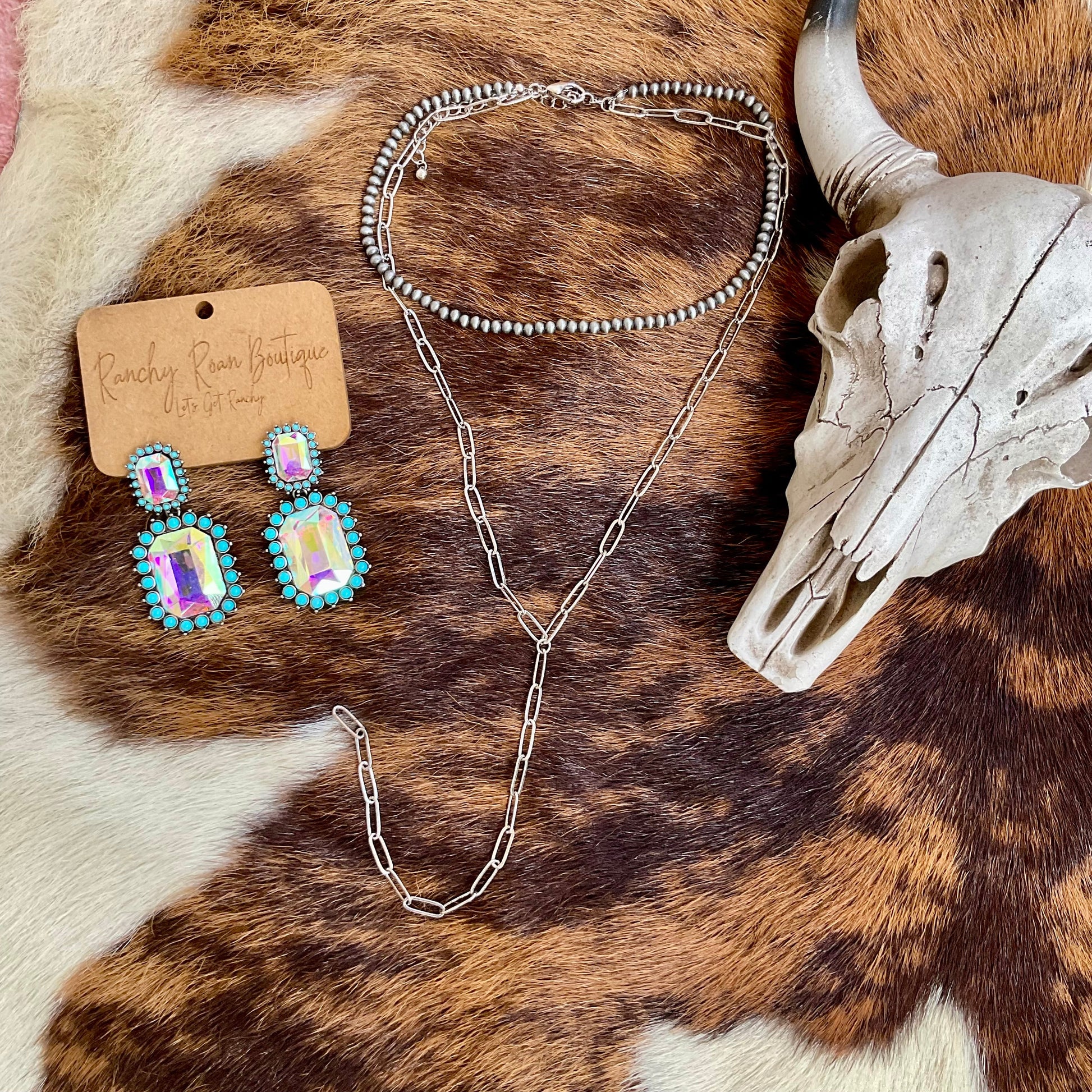 The Western Navajo Pearl Layered Chain Choker is a modern take on a classic cowgirl accessory, blending burnished silver Navajo-style pearls with a delicate layered chain design. This adjustable two-row necklace adds effortless Western charm to any outfit, making it a must-have for boutique owners looking to stock high-demand cowgirl jewelry.