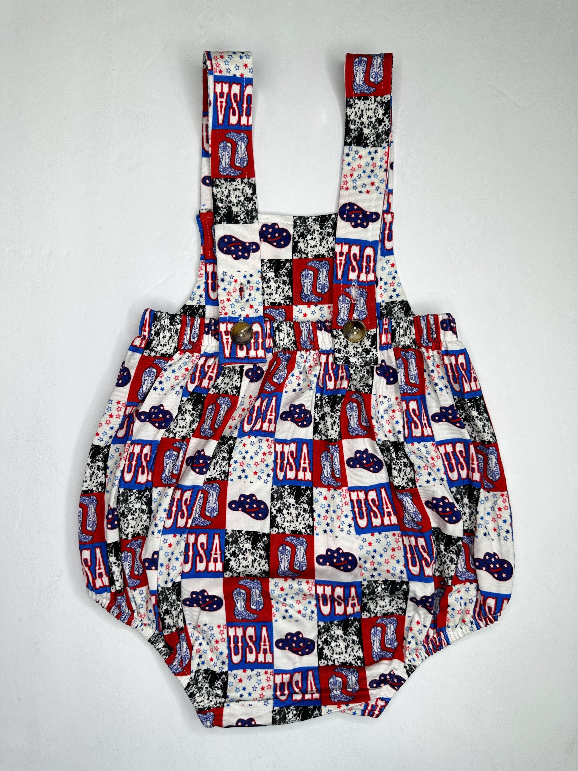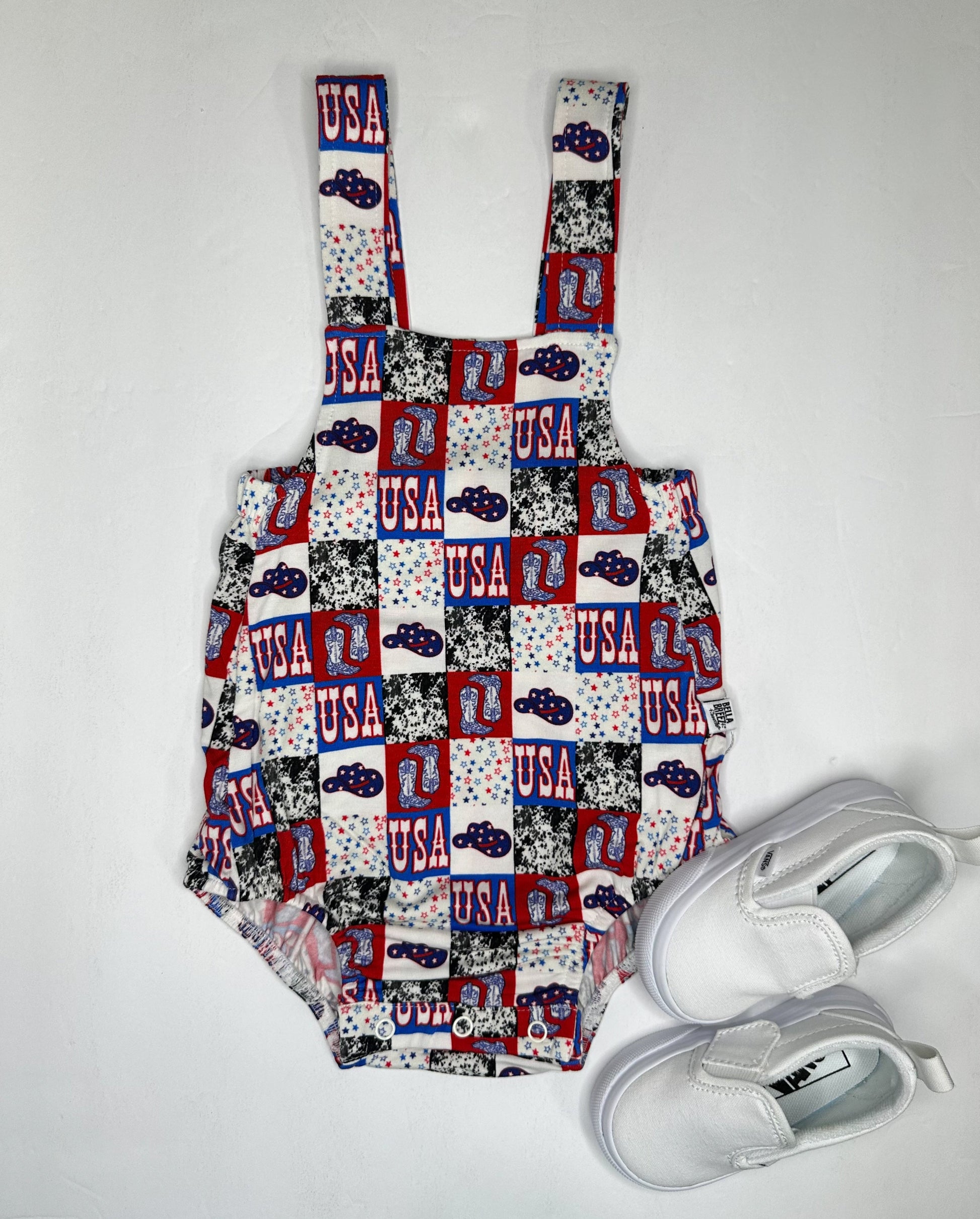 Western USA Suspender Bamboo Romper (FINAL SALE)