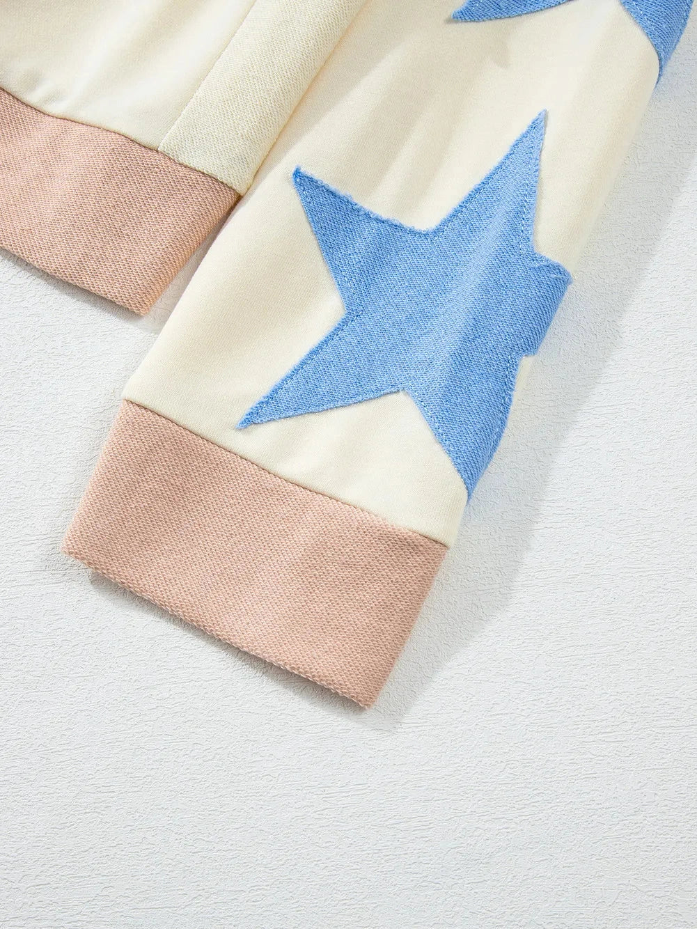 Women Star Contrast Round Neck Long Sleeve Sweatshirt