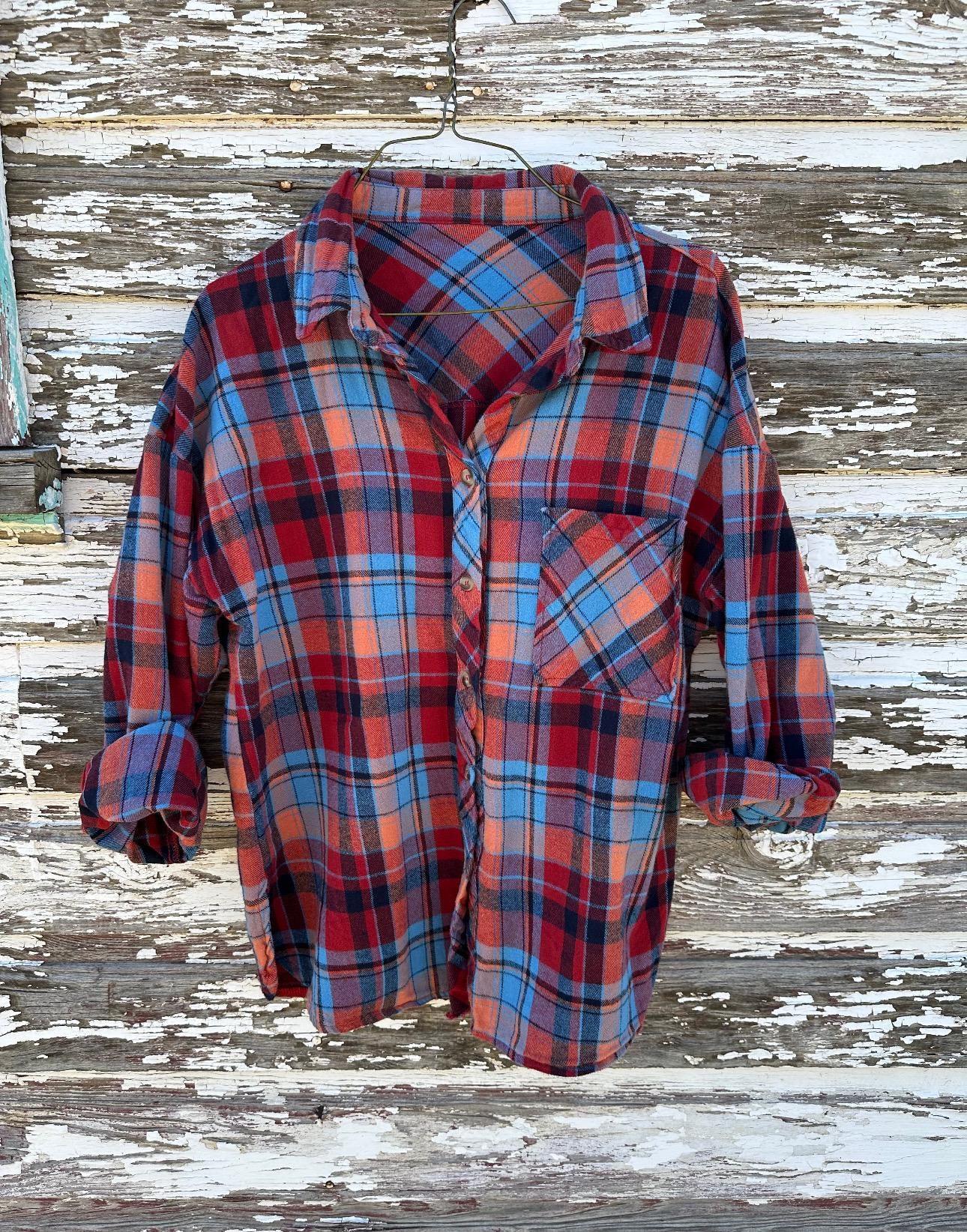 Women's Fall Plaid Shirt | Oversized Button Down | Red or Orange Cotton Flannel | FREE Shipping
