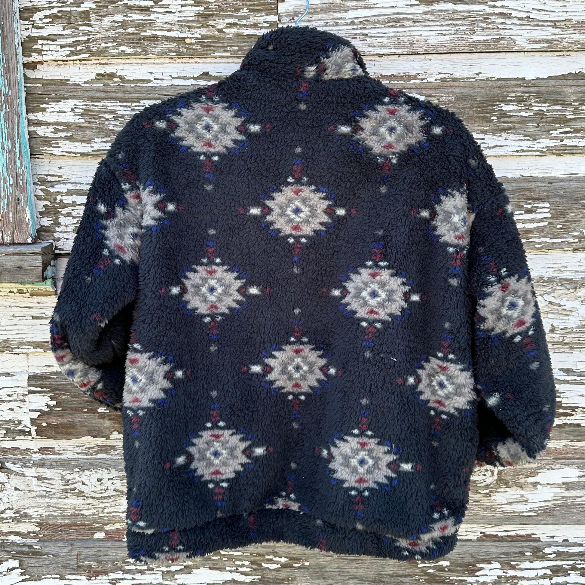 The Black Aztec Cowgirl Jacket is a stylish addition to any Women's Western Jackets collection. This cropped jacket combines cozy comfort with a bold Aztec pattern, making it a standout piece for your wardrobe. Designed as a Western bomber jacket, it features a zip-up front, stand-up collar, and practical pockets. Made from ultra-soft materials, this Aztec Sherpa Coat feels like wrapping yourself in a cloud. Its fully lined interior ensures extra warmth, making it perfect as a spring jacket or a versatile layer for cooler days.