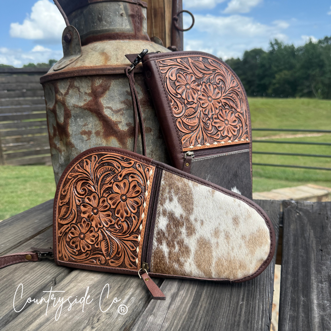 Yuma Cowhide and Tooled Leather 11" Carry Case